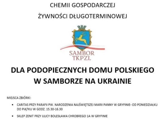 W biurze zawodów w dniu startu odbędzie się zbiórka dla podopiecznych Domu Polskiego w Samborze na Ukrainie. W ramach zbiórki zbierane będą: śpiwory, karimaty, rękawice (zimowe), leki przeciwbólowe, latarki, baterie do latarek, bandaże, produkty spożywcze, środki czystości, chusteczki higieniczne, wata, opatrunki, rękawiczki jednorazowe oraz koce. Wesprzyjmy wspólnie naszych ukraińskich sąsiadów!