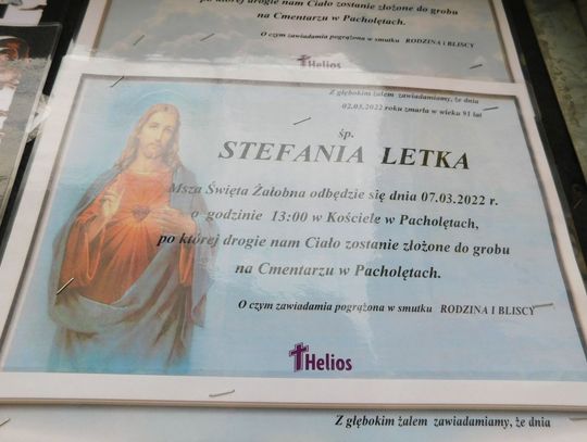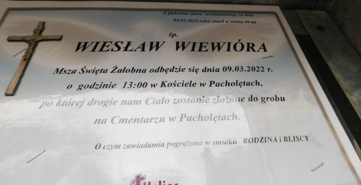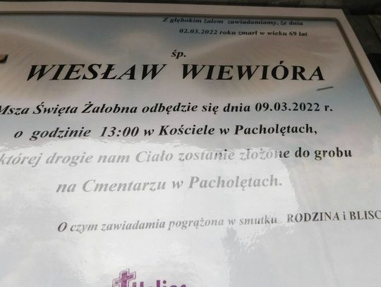 Msza św. żałobna odprawione zostanie 7 marca 2022 r. o godz. 13.00 w kościele w Pacholętach.