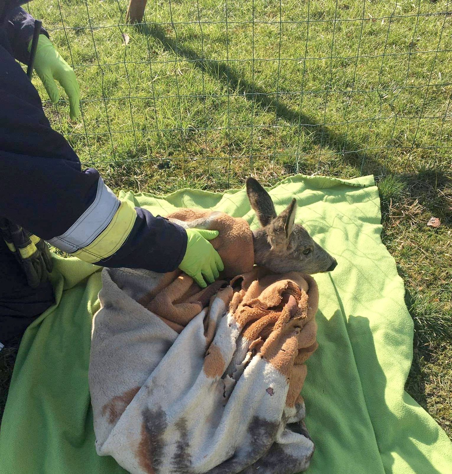 Na miejscu strażacy znaleźli sarenkę, która zaplątała się w ogrodzenie na terenie stacji w Widuchowej.