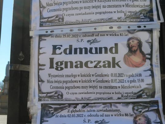 Msza św. pogrzebowa odprawiona została 1 marca 2022 r. o godz. 15 w kościele w Goszkowie.