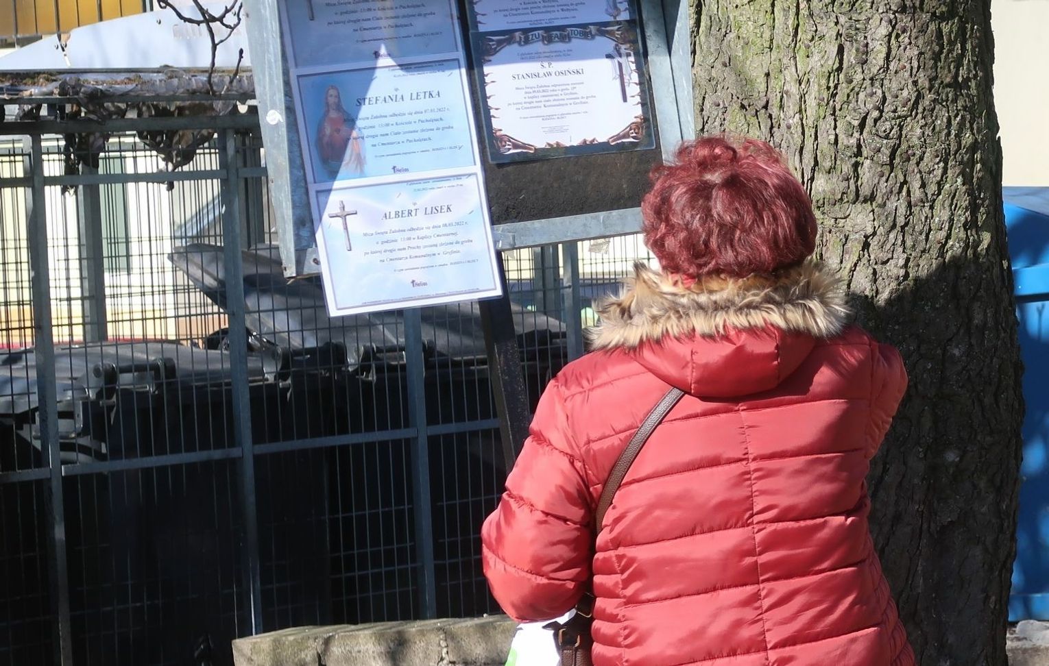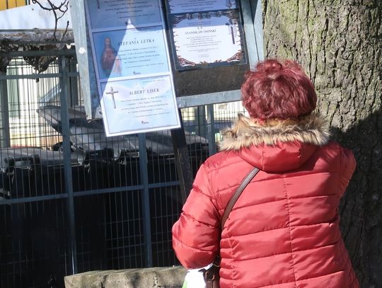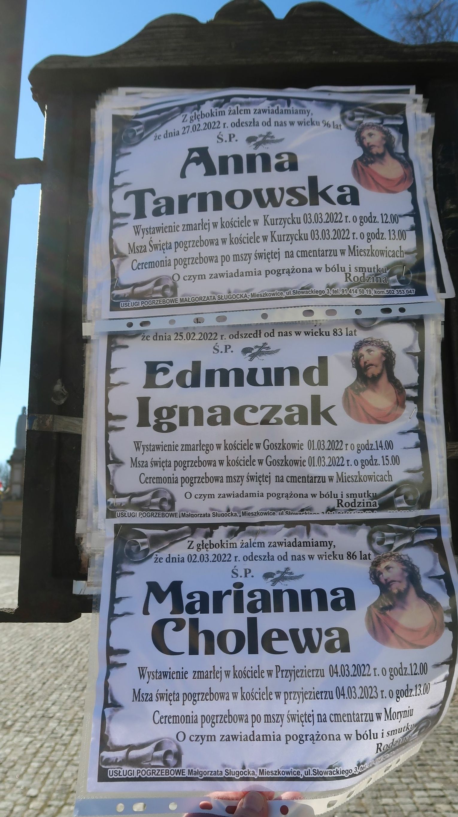 Na tablicach informacyjnych zamieszczono klepsydry z następującymi nazwiskami: