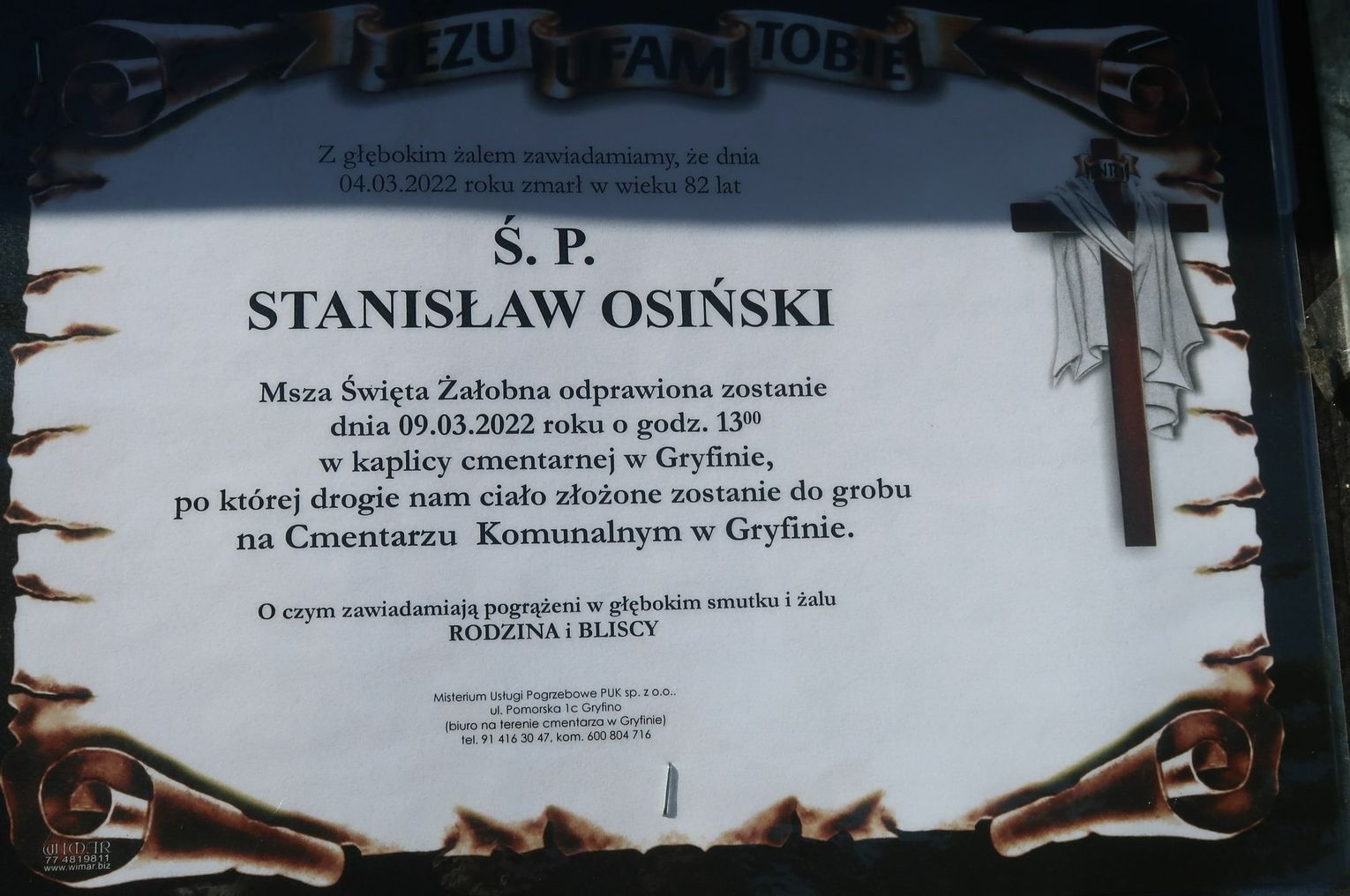 Ciało Zmarłego złożone zostanie do grobu na Cmentarzu Komunalnym w Gryfinie.