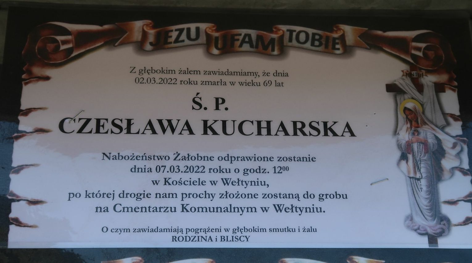 Czesława Kucharska – zmarła 2 marca 2022 r. w wieku 69 lat