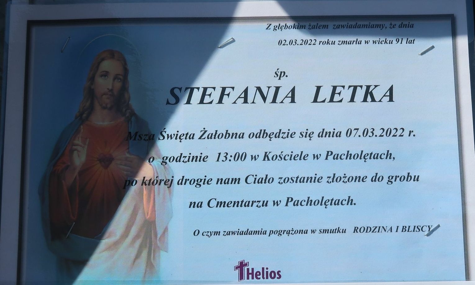 Stefania Letka – zmarła 2 marca 2022 r. w wieku 91 lat