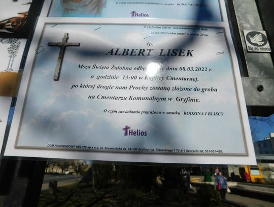 Msza św. żałobna odprawiona zostanie 9 marca 2022 r. o godz. 13.00 w kaplicy cmentarnej w Gryfinie.