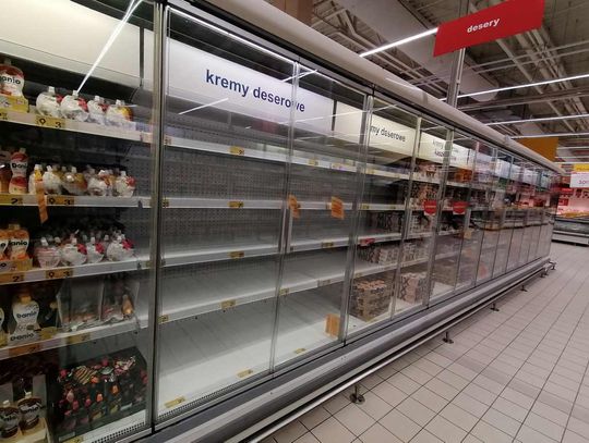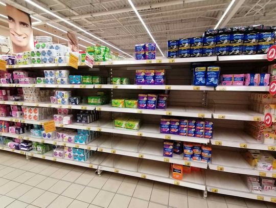 Ale o sklepach... W wielu, można powiedzieć wszystkich we wschodniej Polsce półki sklepowe wyglądają tak, jakby i u nas działo się coś złego. Brakuje wielu produktów. Półki „zieją” pustymi miejscami po wodzie, kosmetykach, pieluchach i podpaskach, słodyczach, bateriach, proszkach do prania... Znikają zazwyczaj tańsze produkty, a droższe zostają na swoich miejscach. Powód jest prosty – wybierając tańsze, można kupić więcej.