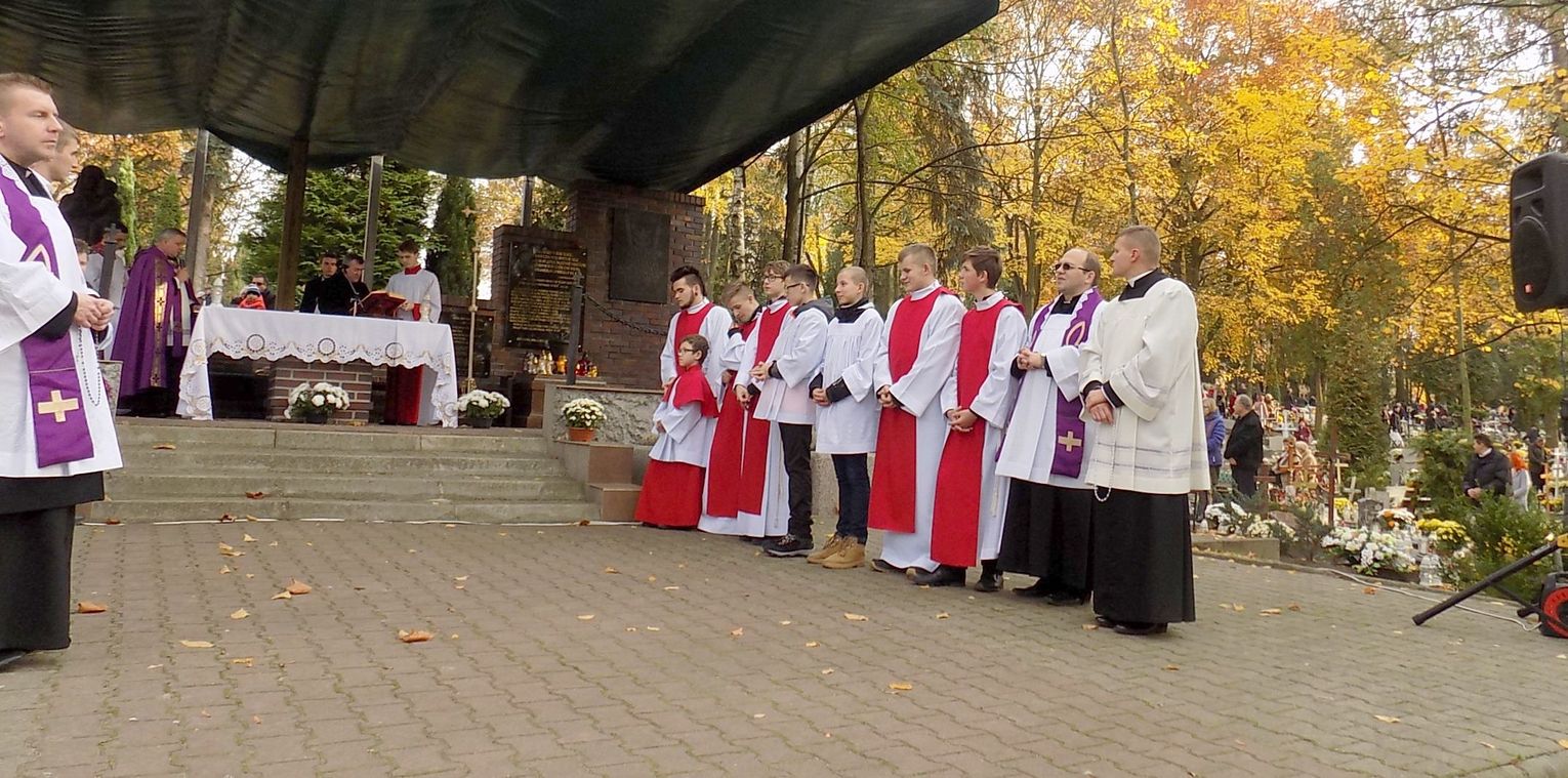 – To jedno z najbardziej radosnych świąt w naszym Kościele, bo wzrok nasz kieruje się ku niebu, gdzie czeka nas życie wieczne. Słuchajcie, bo dziś wszyscy zmarli mówią do was. Wobec śmierci jesteśmy równi – mówił ks. dziekan prob. kan. Henryk Krzyżewski w swoim mądrym kazaniu, trafiającym zarówno do wierzących jak i niewierzących.