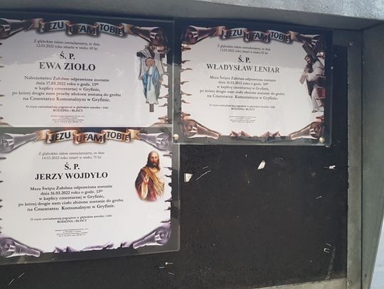 Msza św. żałobna odprawiona zostanie 16 marca 2022 r. o godz. 10.00 w kaplicy cmentarnej w Gryfinie.