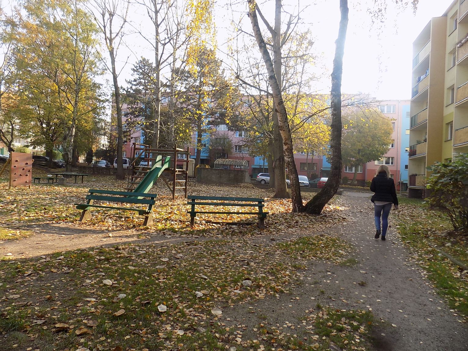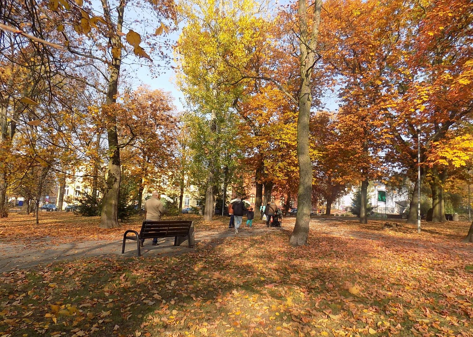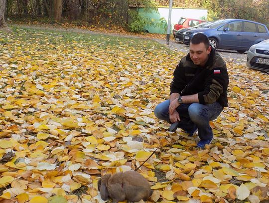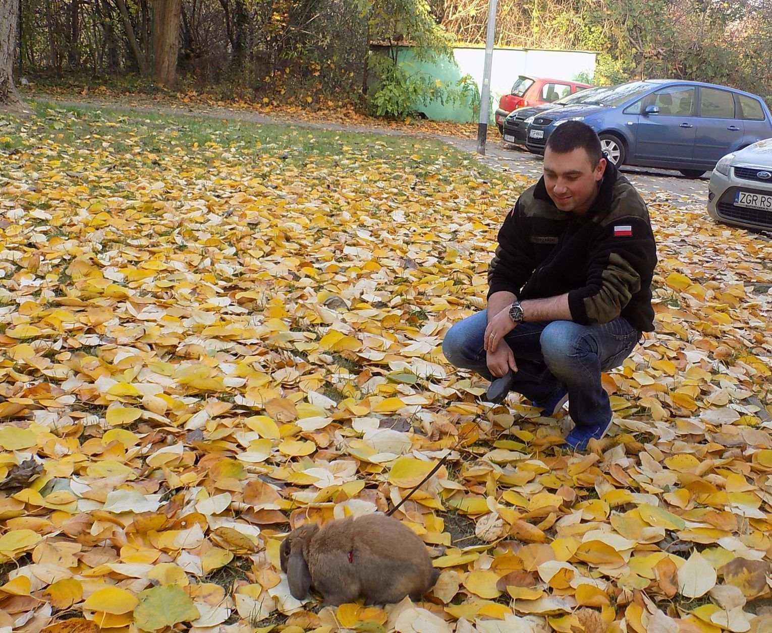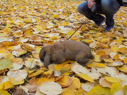 Parkowe alejki zasypane złotymi i brązowymi liśćmi, wśród których dziewczyny szukają żołędzi. Królik Gucio, spacerując ze swoim panem, wzbudza spore zainteresowanie. Pies na spacerze to i owszem, ale trusiak? – z sympatią dziwią się przechodzący ludzie.