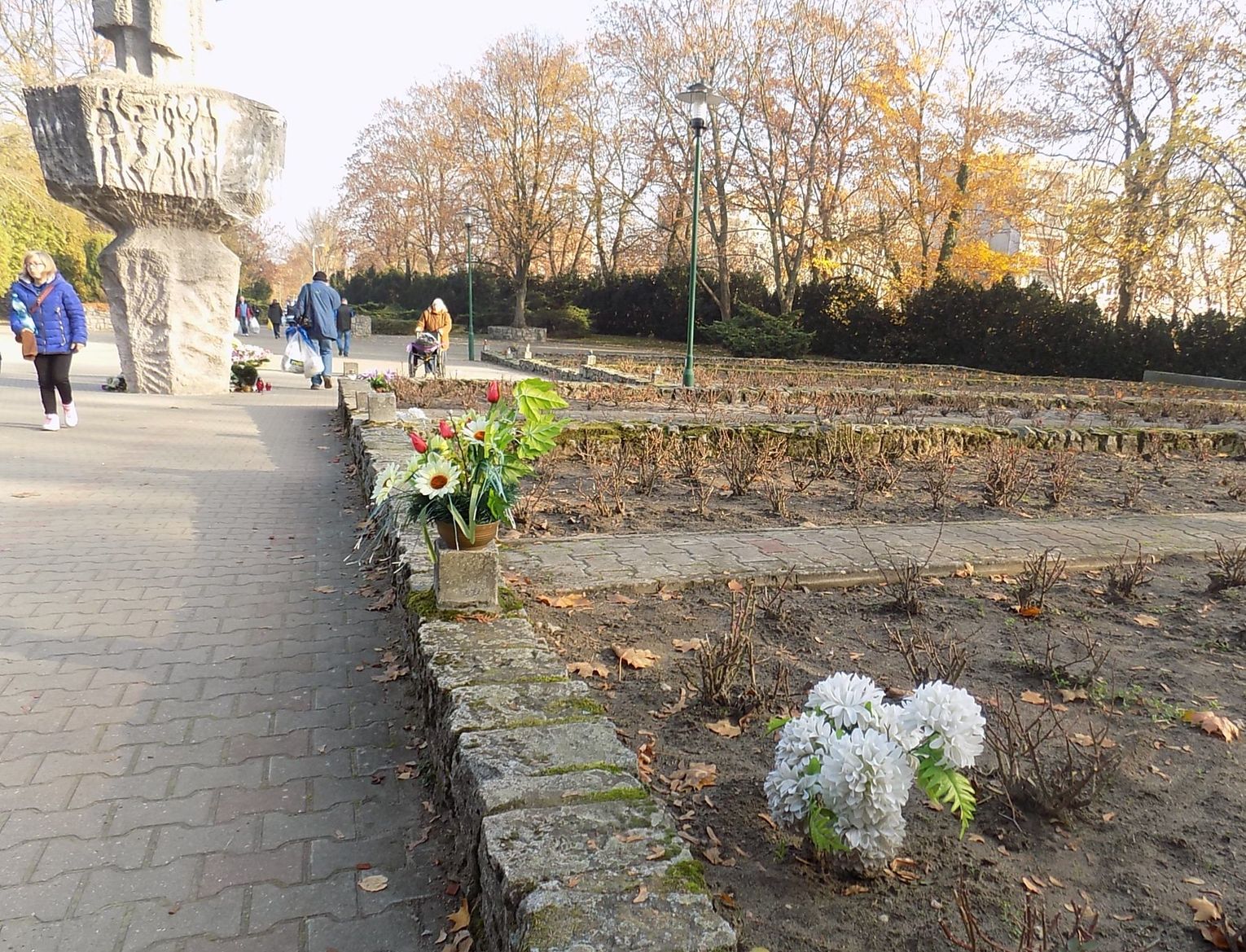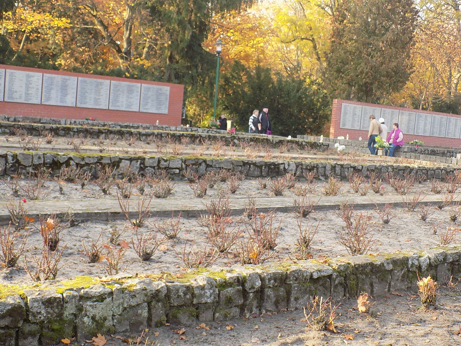 Cmentarz Żołnierzy Radzieckich zadbany. Znicze i kwiaty przed pomnikiem. Setki nazwisk tych, których powrotu gdzieś hen daleko bliscy się nie doczekali.