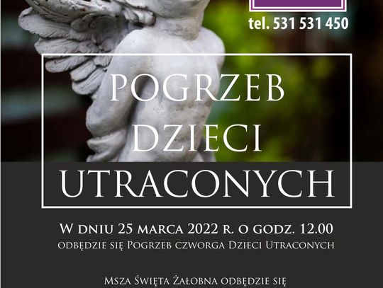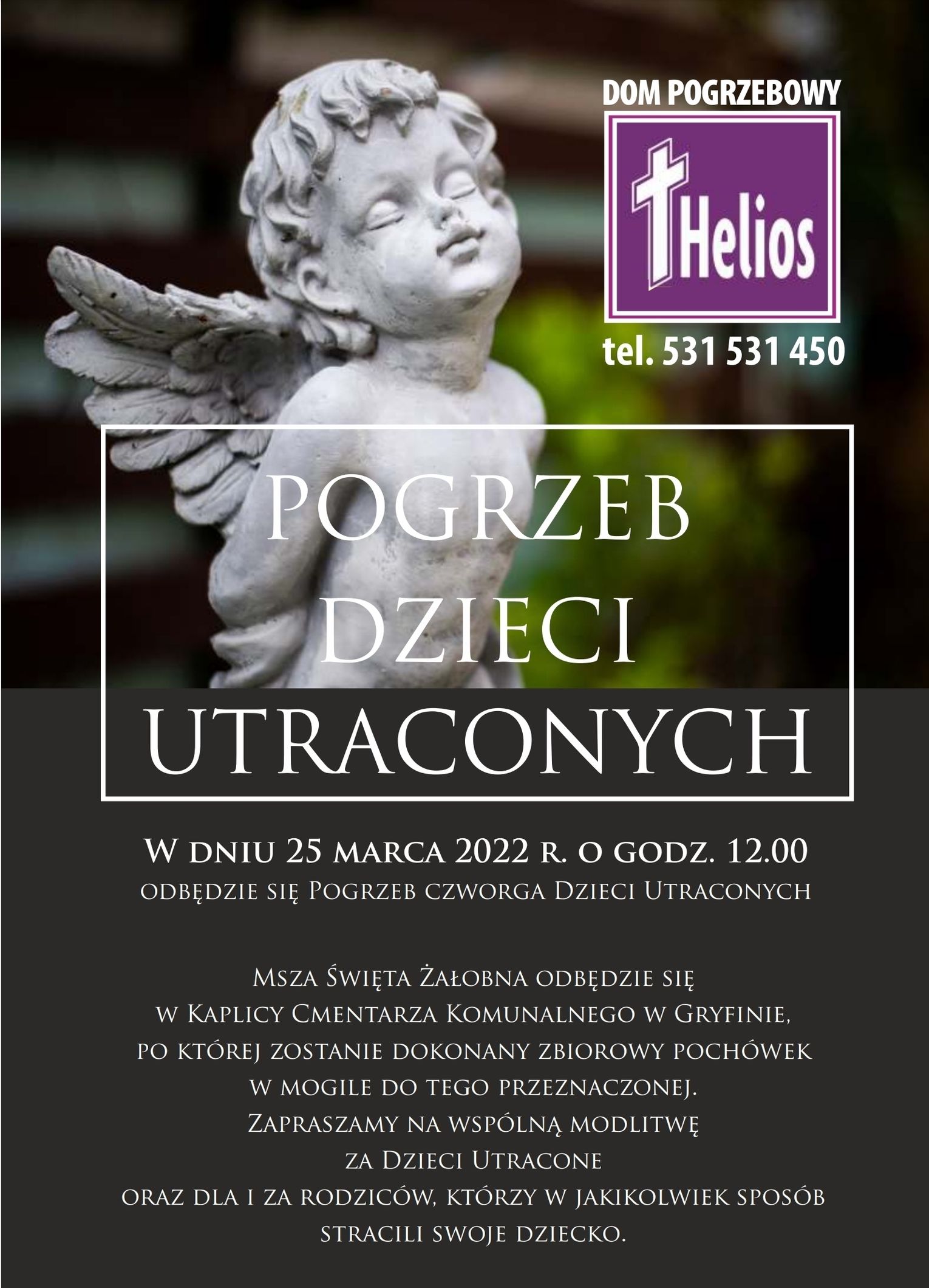 W piątek 25 marca 2022 r. o godz. 12 w Gryfinie odbędzie się pogrzeb czworga dzieci utraconych. Msza św. żałobna odprawiona zostanie w kaplicy Cmentarza Komunalnego w Gryfinie. Następnie dokonany zostanie zbiorowy pochówek w mogile do tego przeznaczonej.