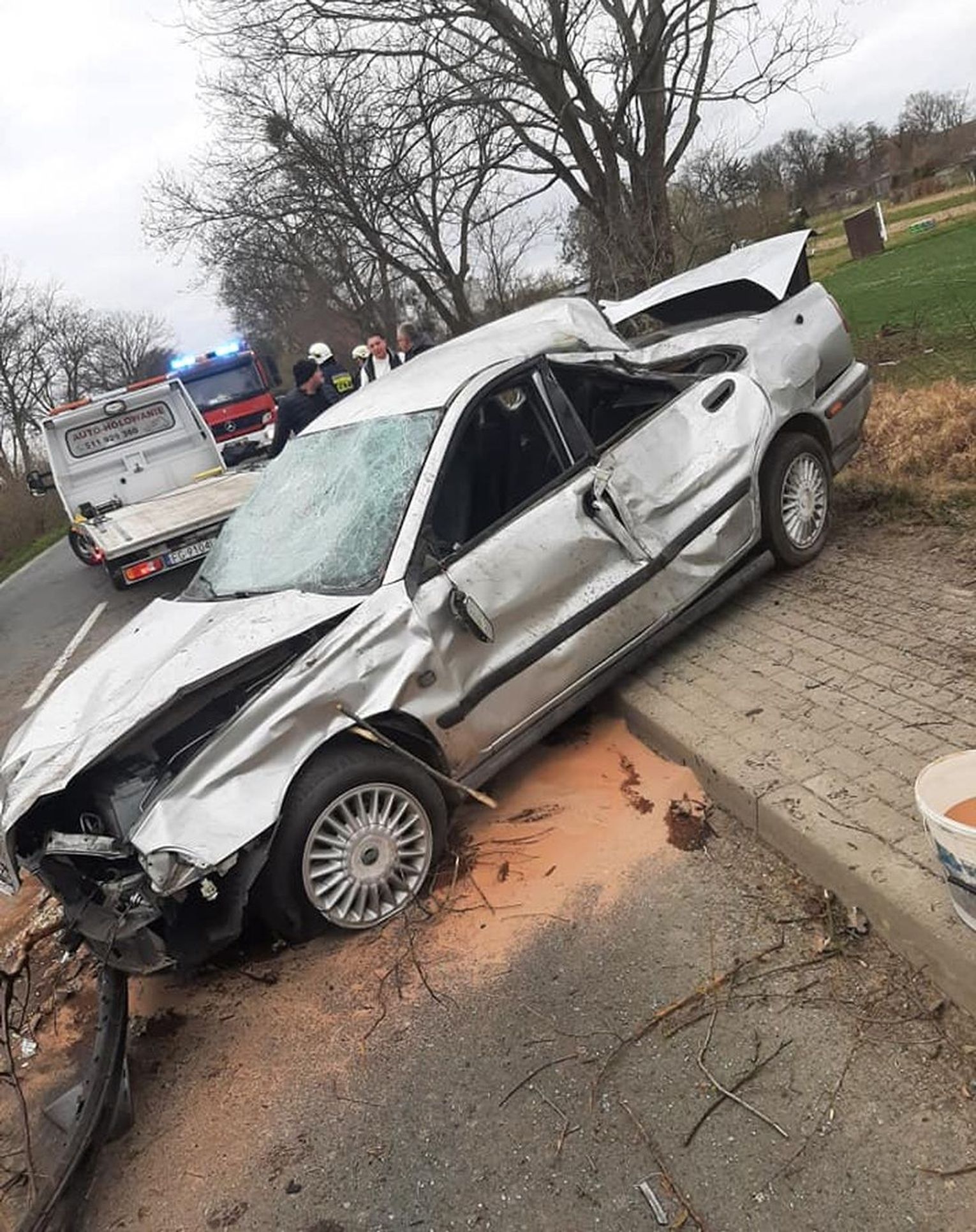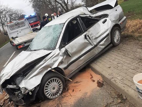 Samochód został poważnie zniszczony. Kierowca miał sporo szczęścia. Nie wymagał hospitalizacji.