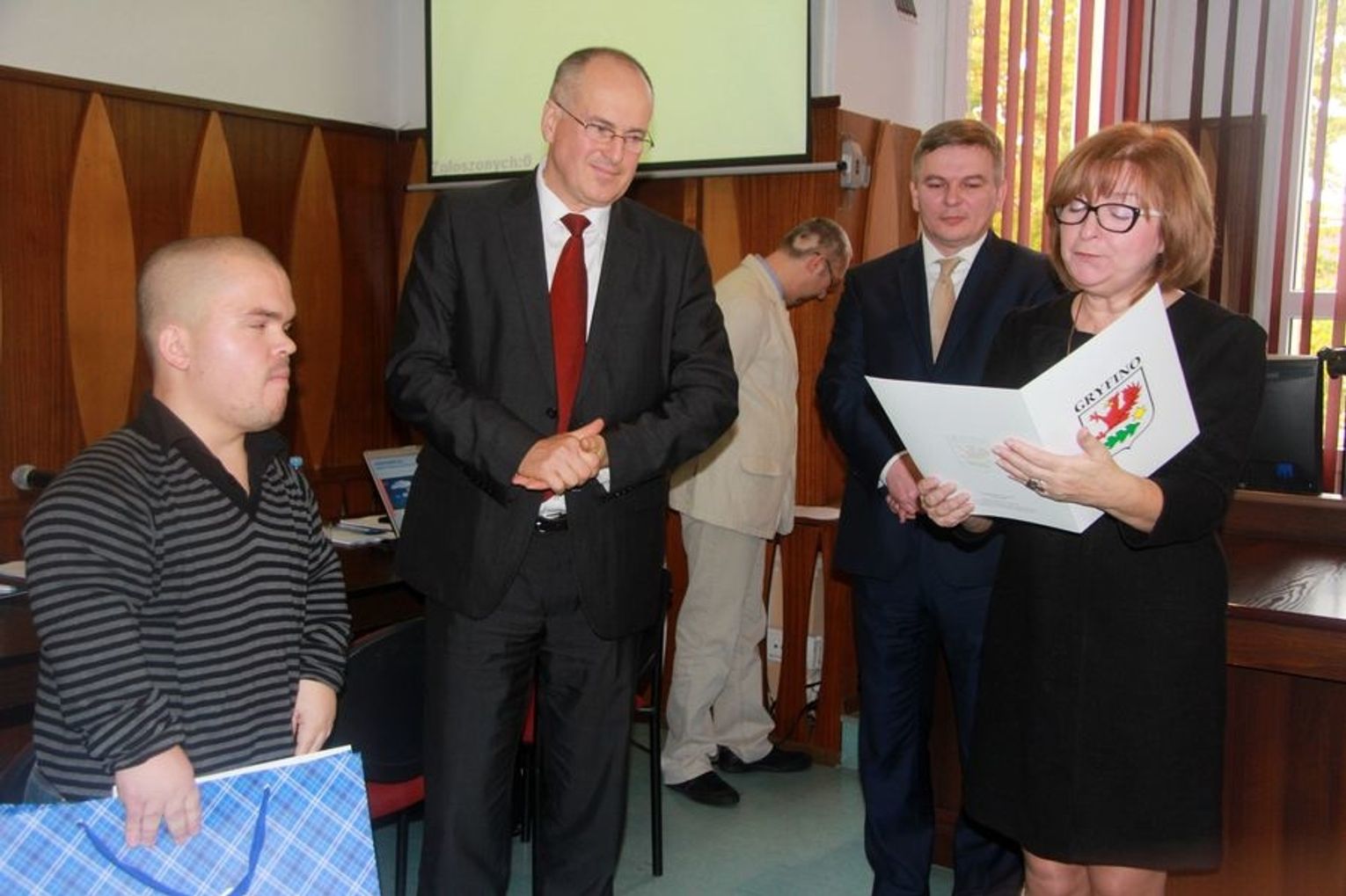 Burmistrz Mieczysław Sawaryn zaproponował, że chętnie zagra z gryfińskim sportowcem w bocci i ma nadzieję pokonać mistrza. 24-letni Daniel Pietras odpowiedział, że jeśli on wygra to w końcu dołoży burmistrzowi, który jest jego szefem.
