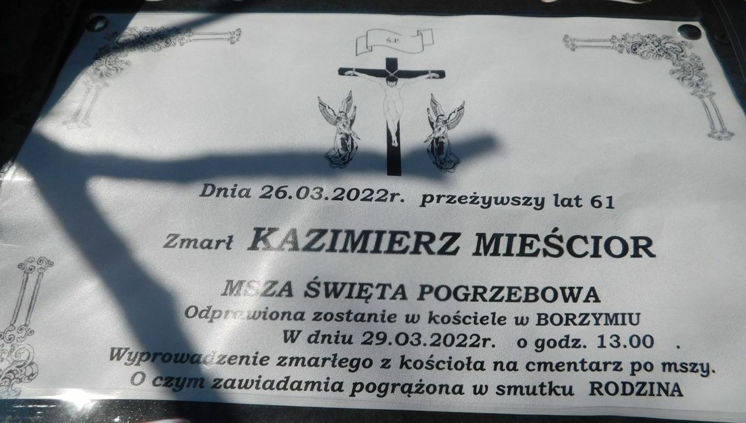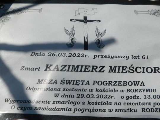 Msza św. pogrzebowa odprawiona zostanie 29 marca 2022 r. o godz. 13.00 w kościele w Borzymiu.