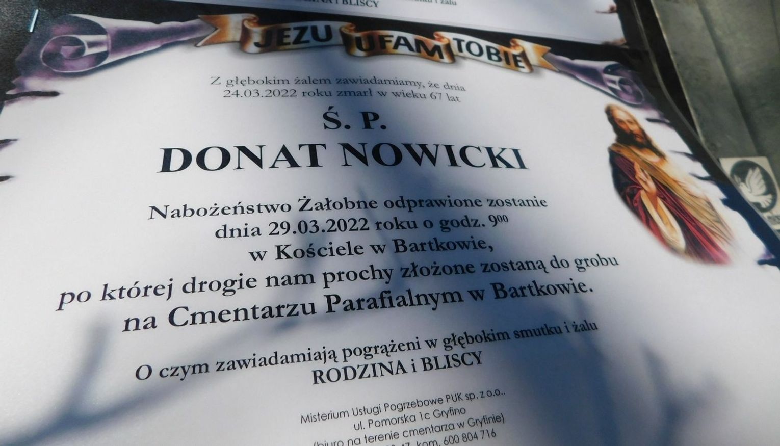 Nabożeństwo żałobne odprawione zostanie 29 marca 2022 r. o godz. 9.00 w kościele w Bartkowie.