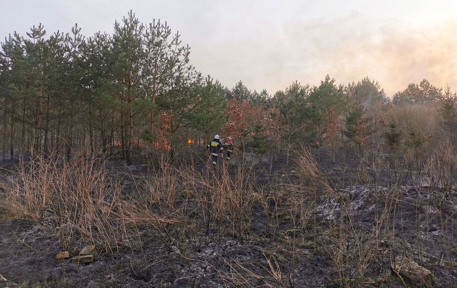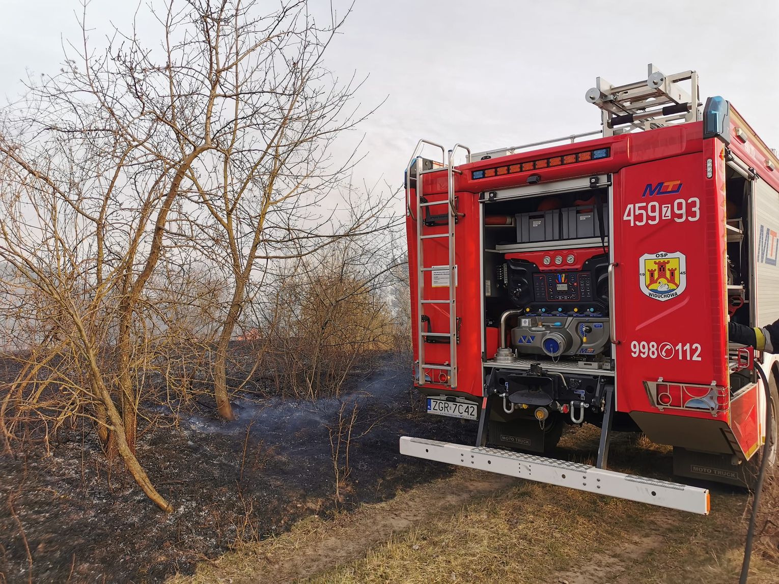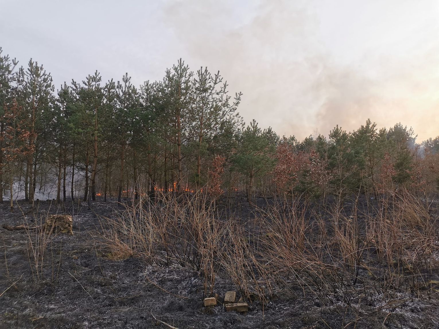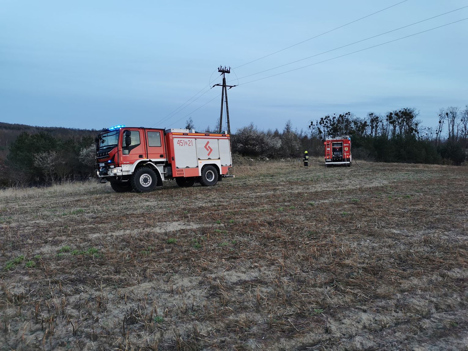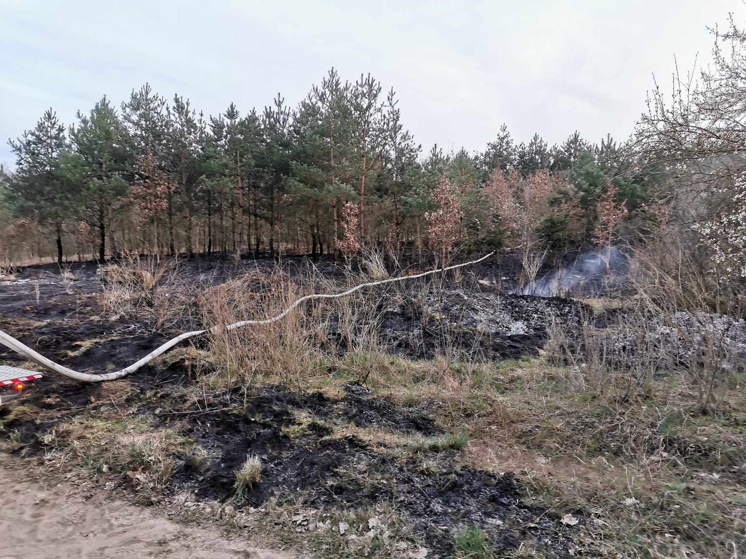 Strażacy zostali zadysponowani do pożaru lasu oraz nieużytków. Po dojechaniu na miejsce okazało się, że paliły się trawy, a kilkaset metrów dalej zlokalizowano kolejny pożar. Palił się młodnik. Ogień szybko się rozprzestrzeniał z powodu silnego wiatru. Na miejsce wezwano zatem dodatkowe siły.