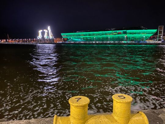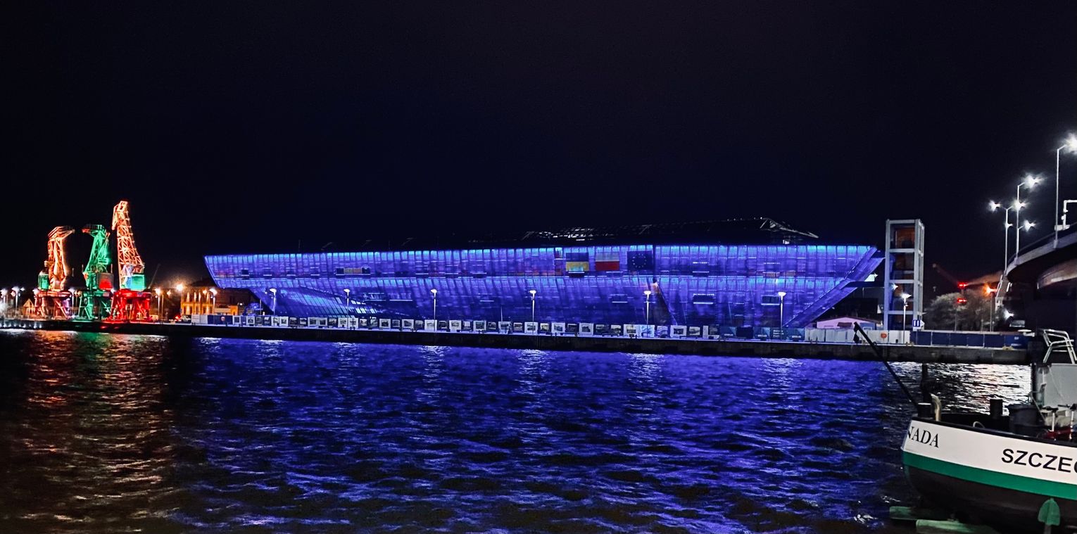 System oświetlenia fasady budynku Morskiego Centrum Nauki w Szczecinie oparto na różnej długości oprawach oświetleniowych wykonanych w technologii LED. Soczewkowe układy optyczne dobrane są indywidualne do mocy, lokalizacji oraz rozmiaru opraw.