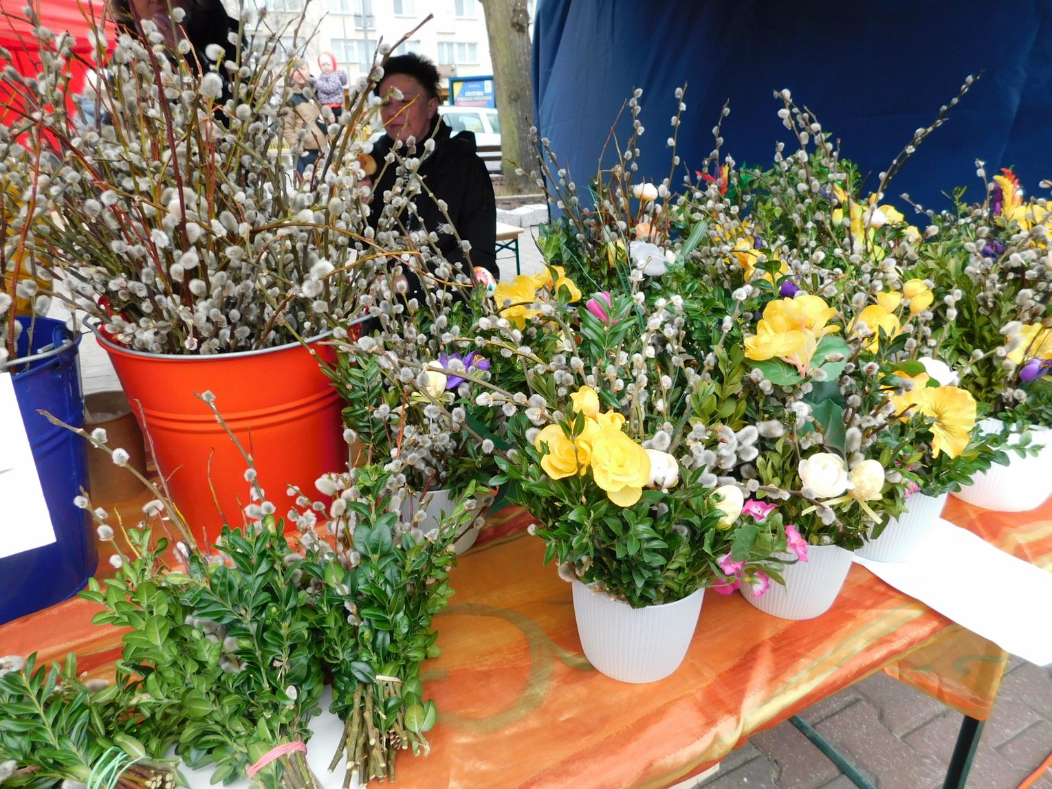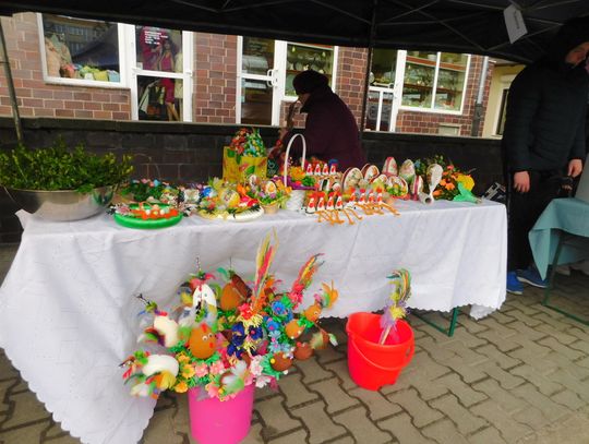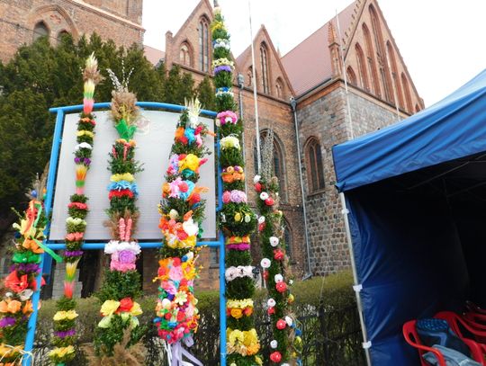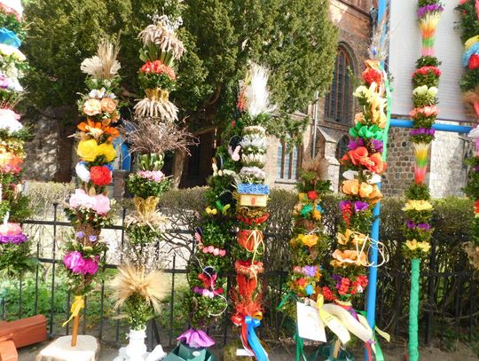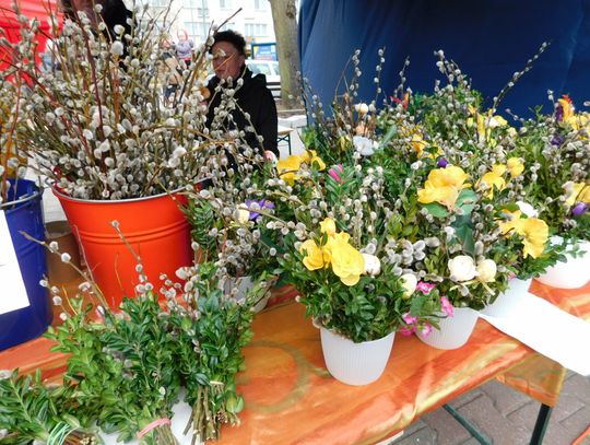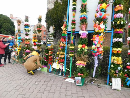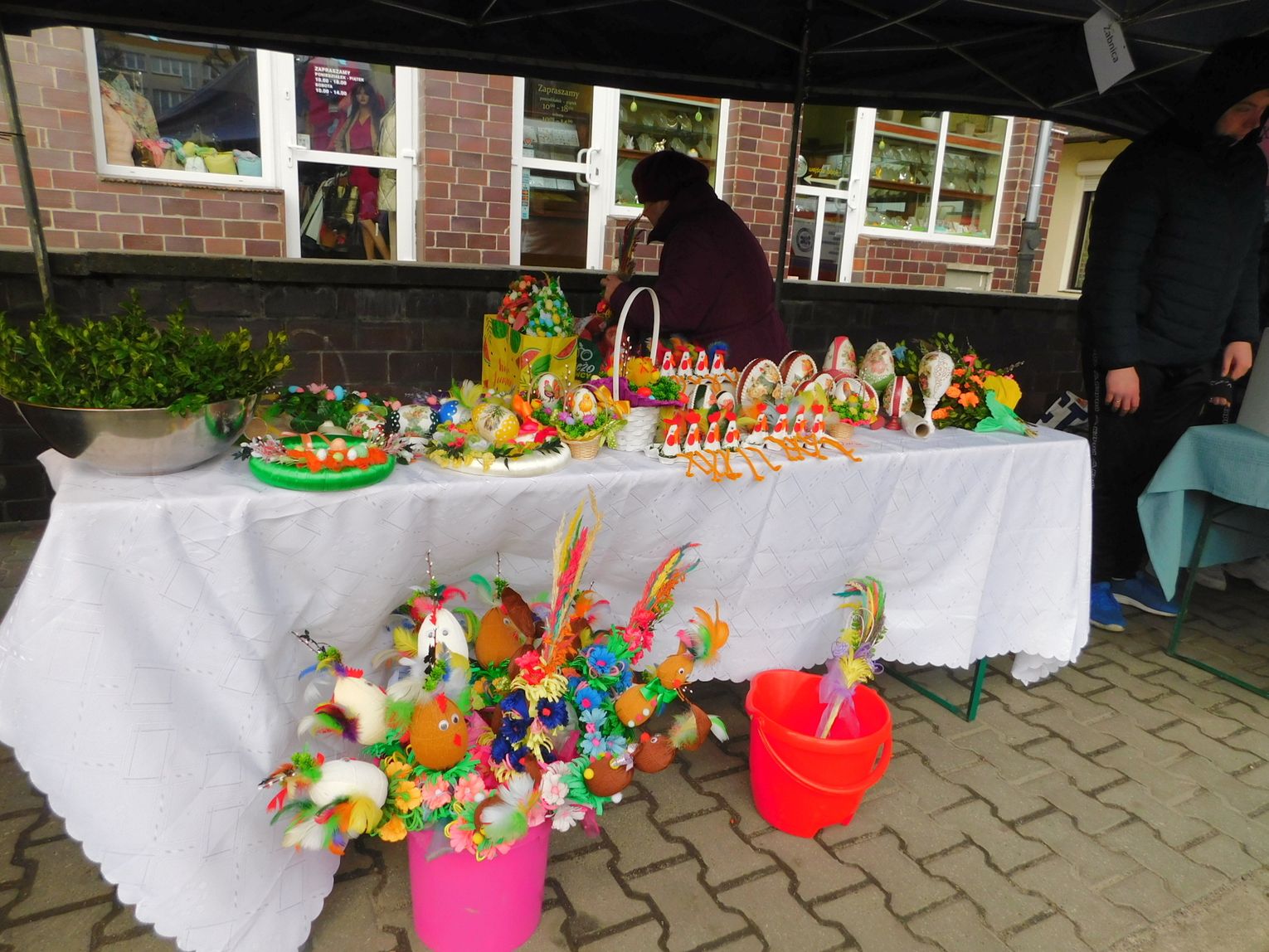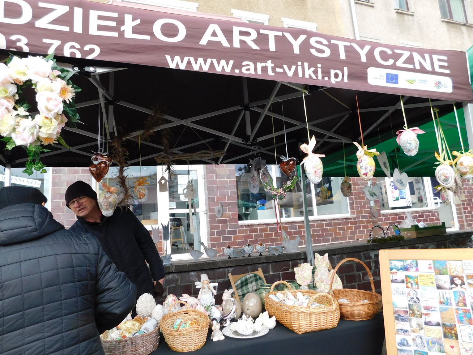Na straganach ozdoby świąteczne, wypieki i palmy. Ogólnie sporo rękodzieła.