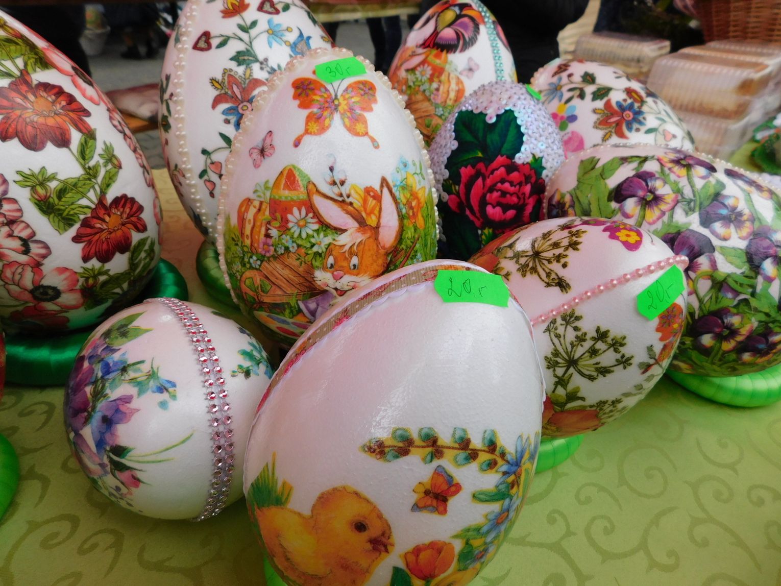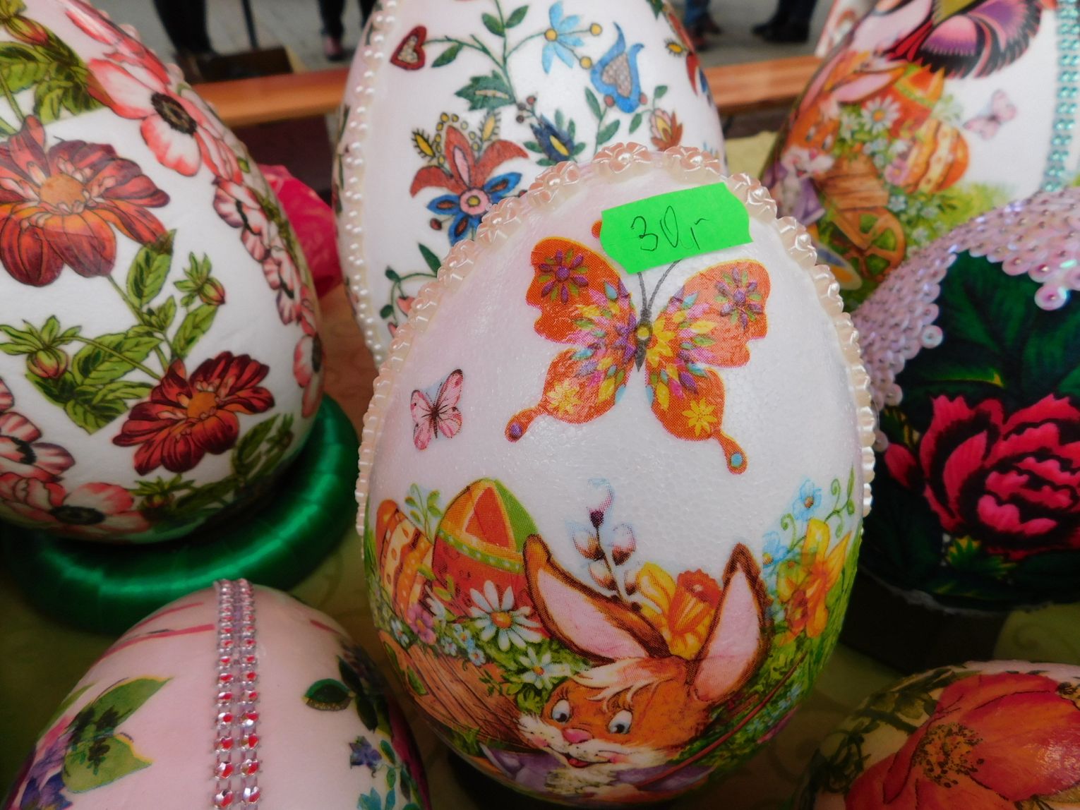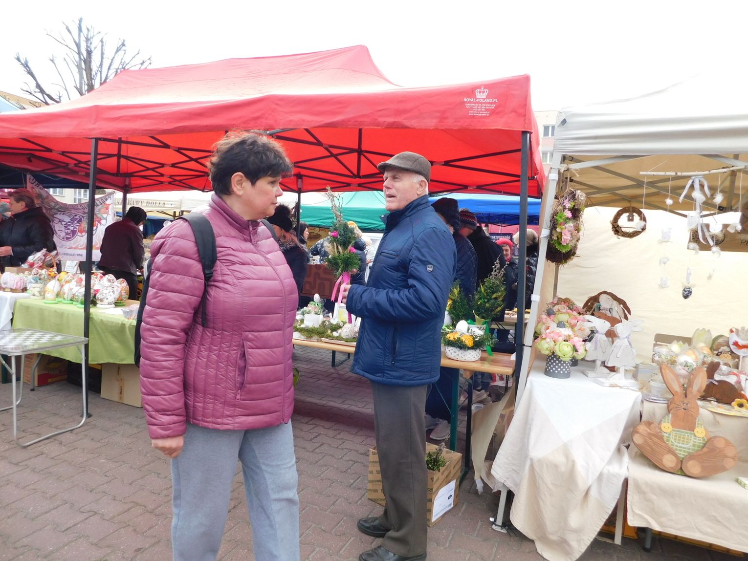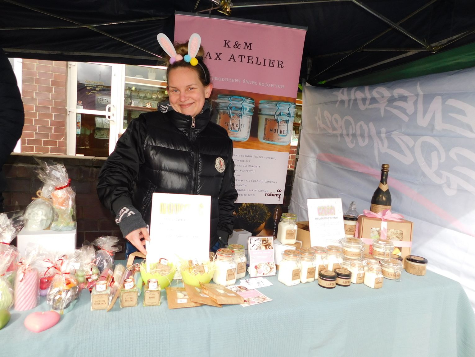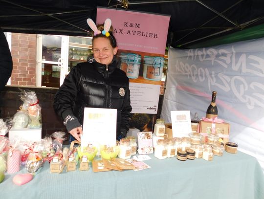 Na straganach ozdoby świąteczne, wypieki i palmy. Ogólnie sporo rękodzieła.