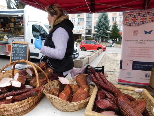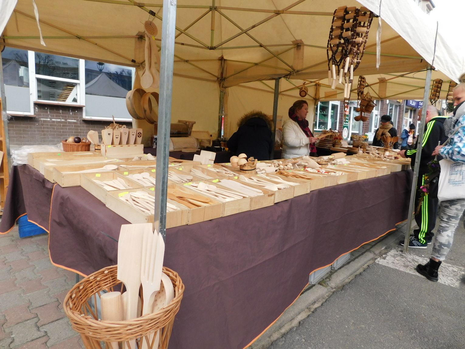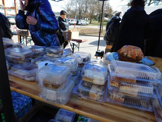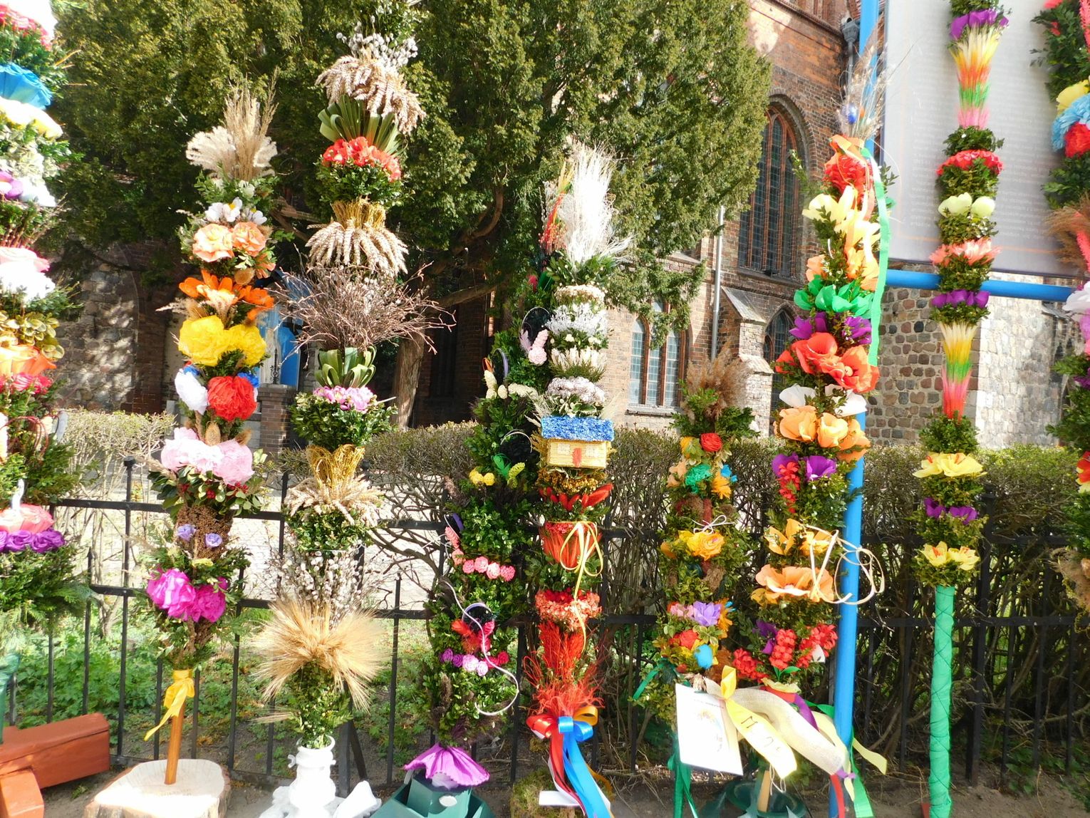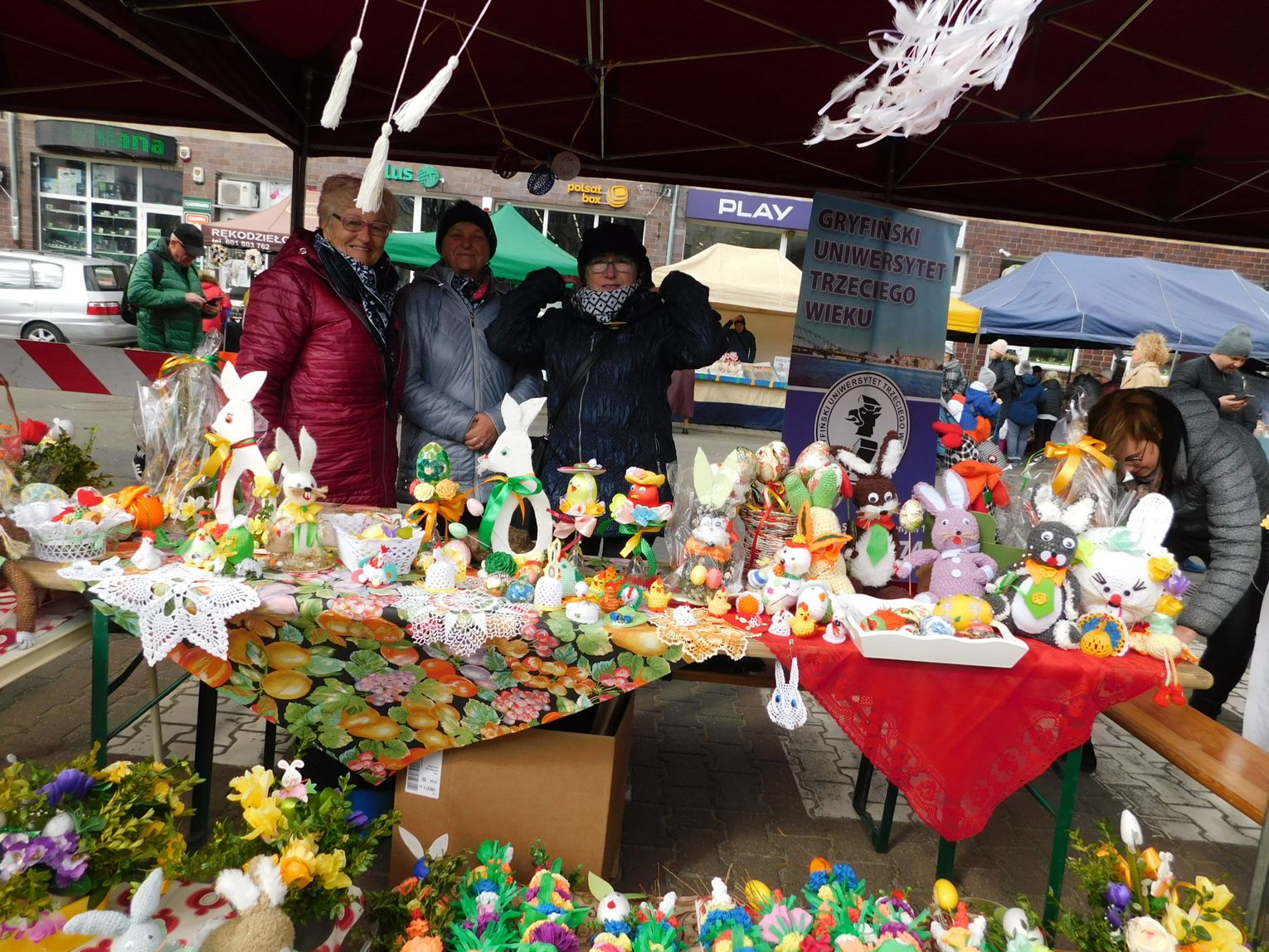 Na straganach ozdoby świąteczne, wypieki i palmy. Ogólnie sporo rękodzieła.
