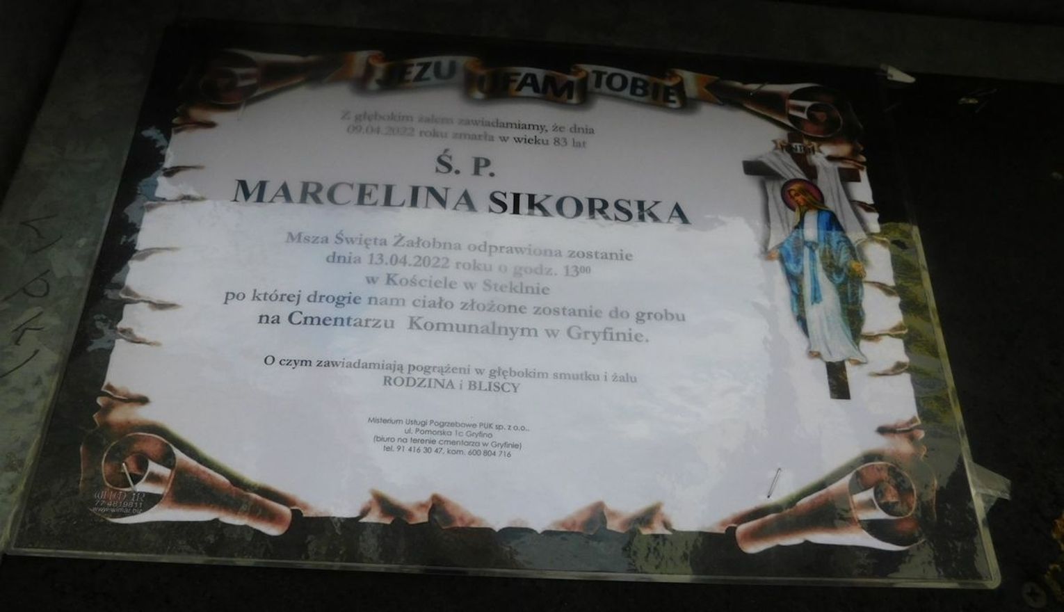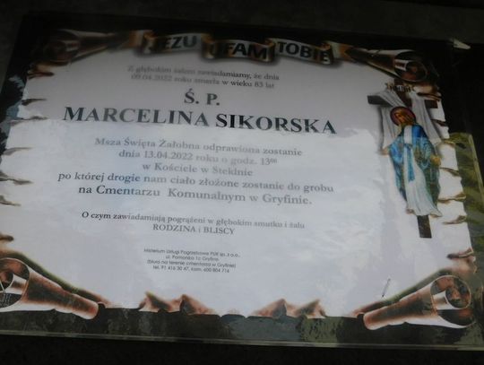 Msza św. żałobna odprawiona zostanie 13 kwietnia 2022 r. o godz. 13.00 w kościele w Steklnie
