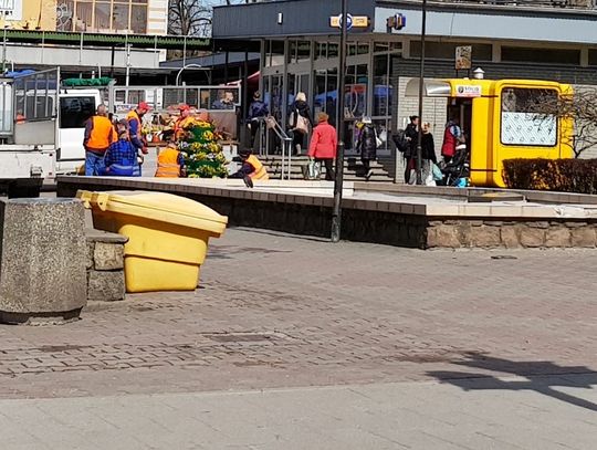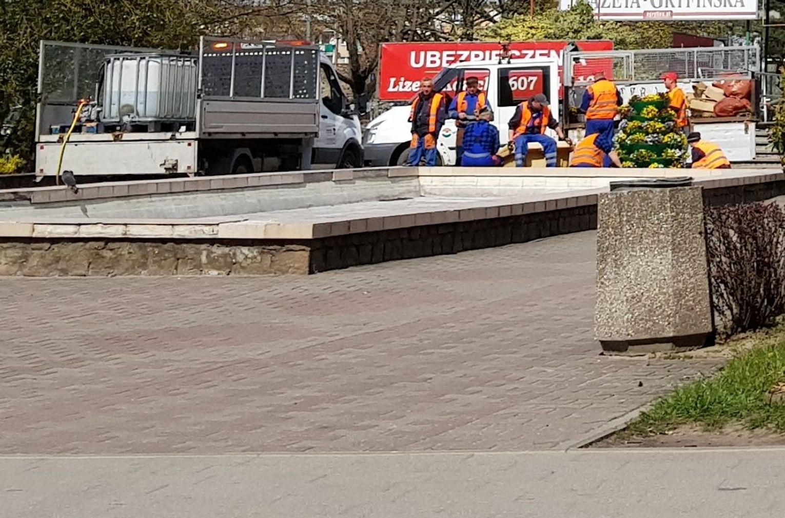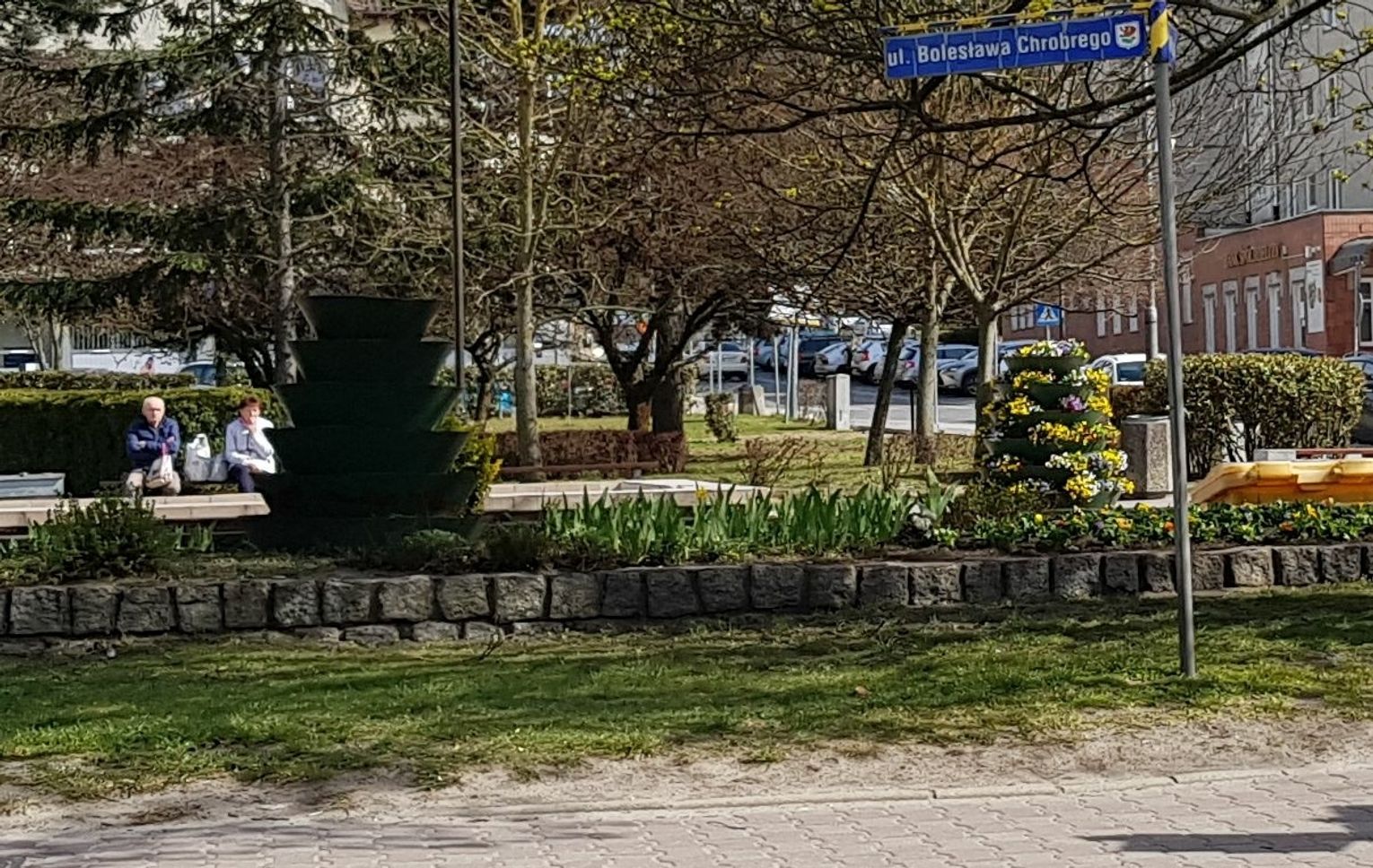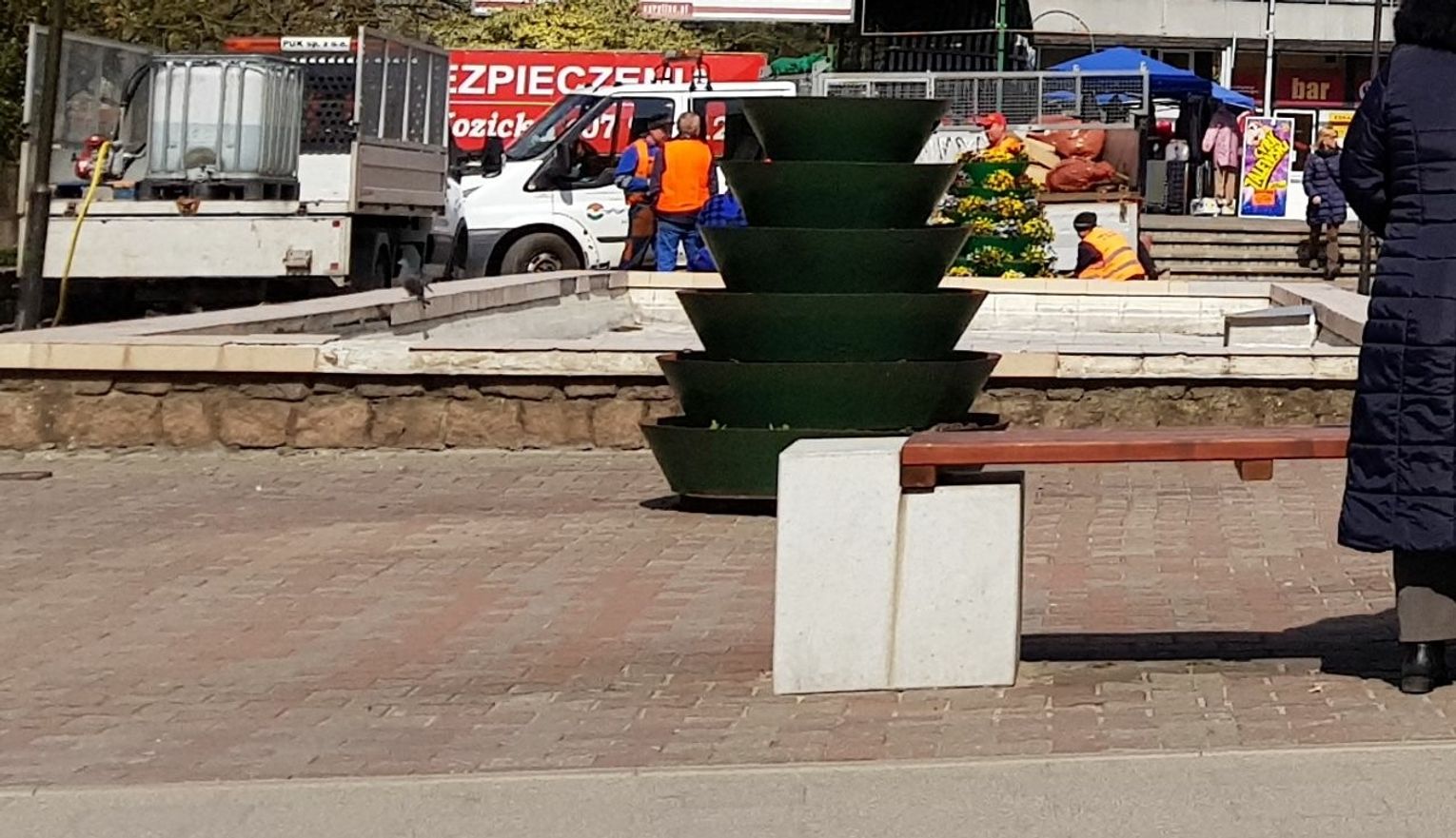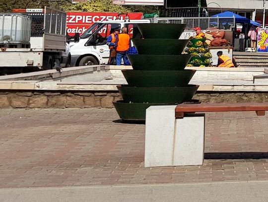 Gryfino kontynuuje ukwiecanie miasta. Akcję przeprowadzono dziś na placu przed Biedronką koło fontanny.