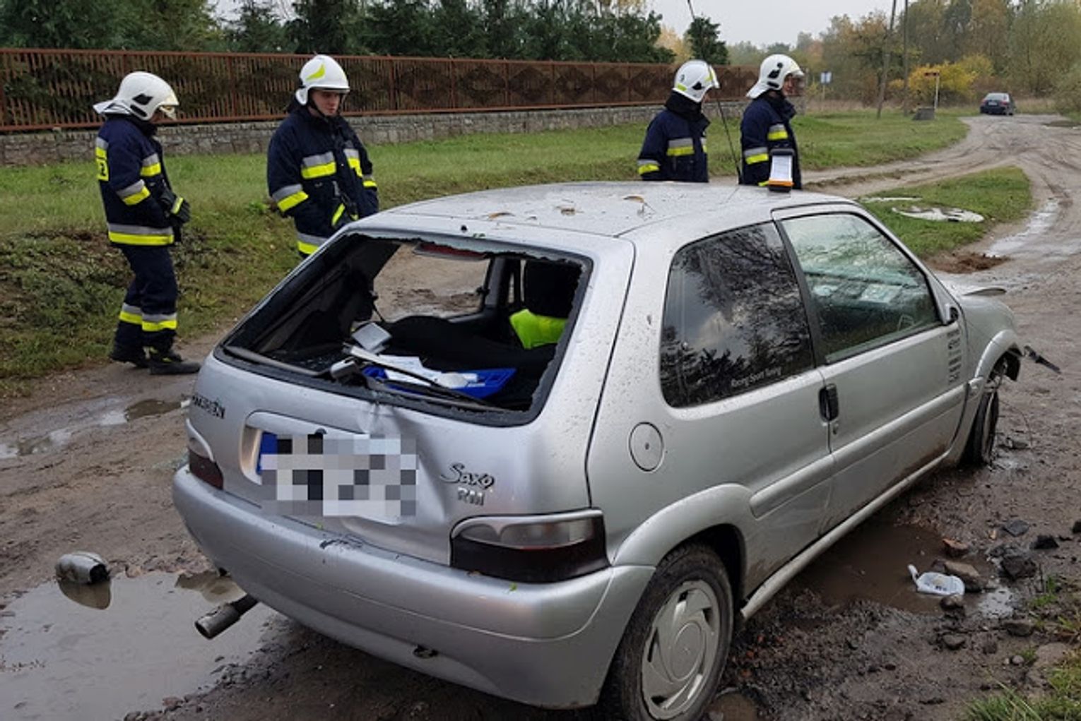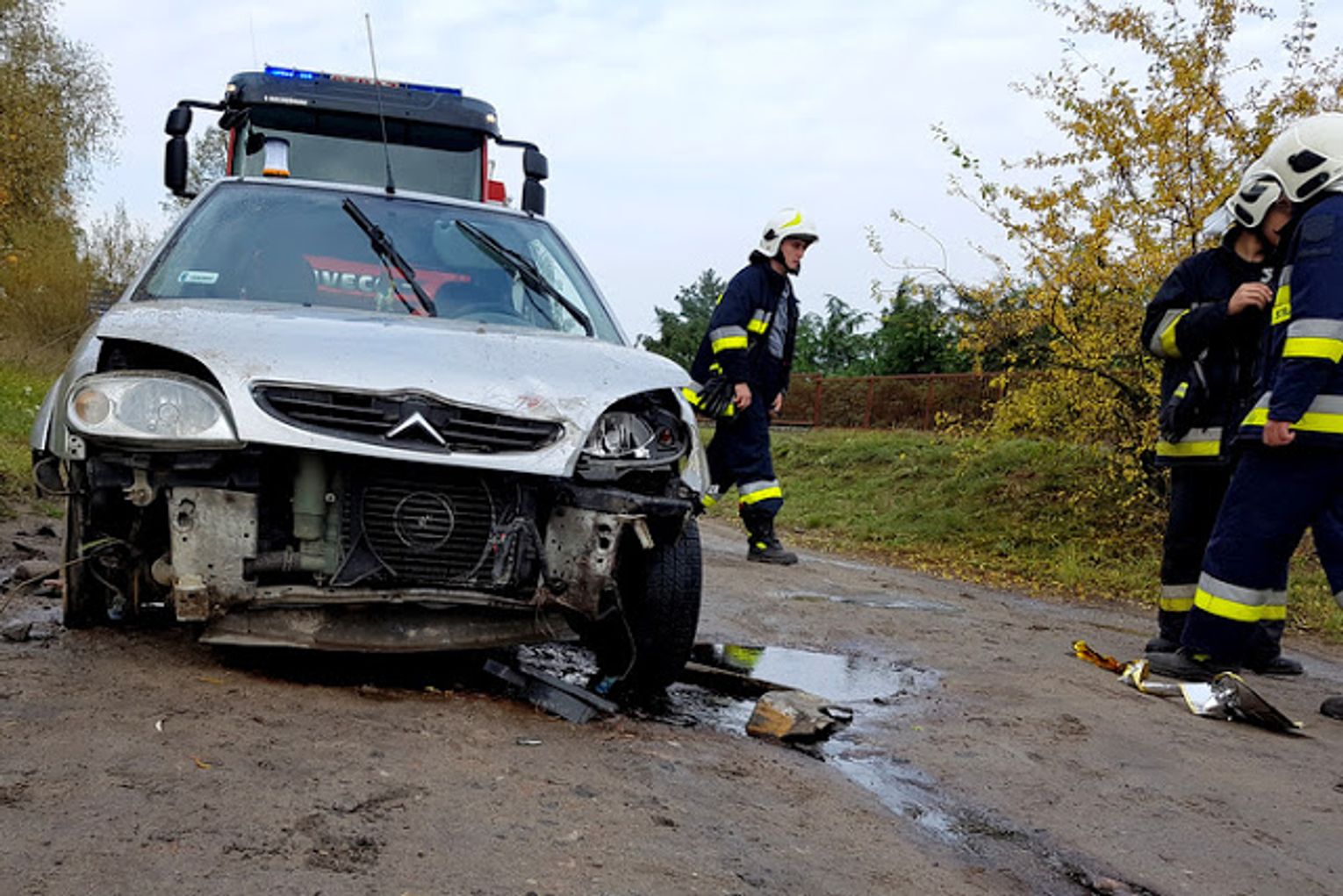 Jednostka została wezwana do zabezpieczenia pojazdu, który uległ wypadkowi i został porzucony na ulicy Transportowej w Chojnie.