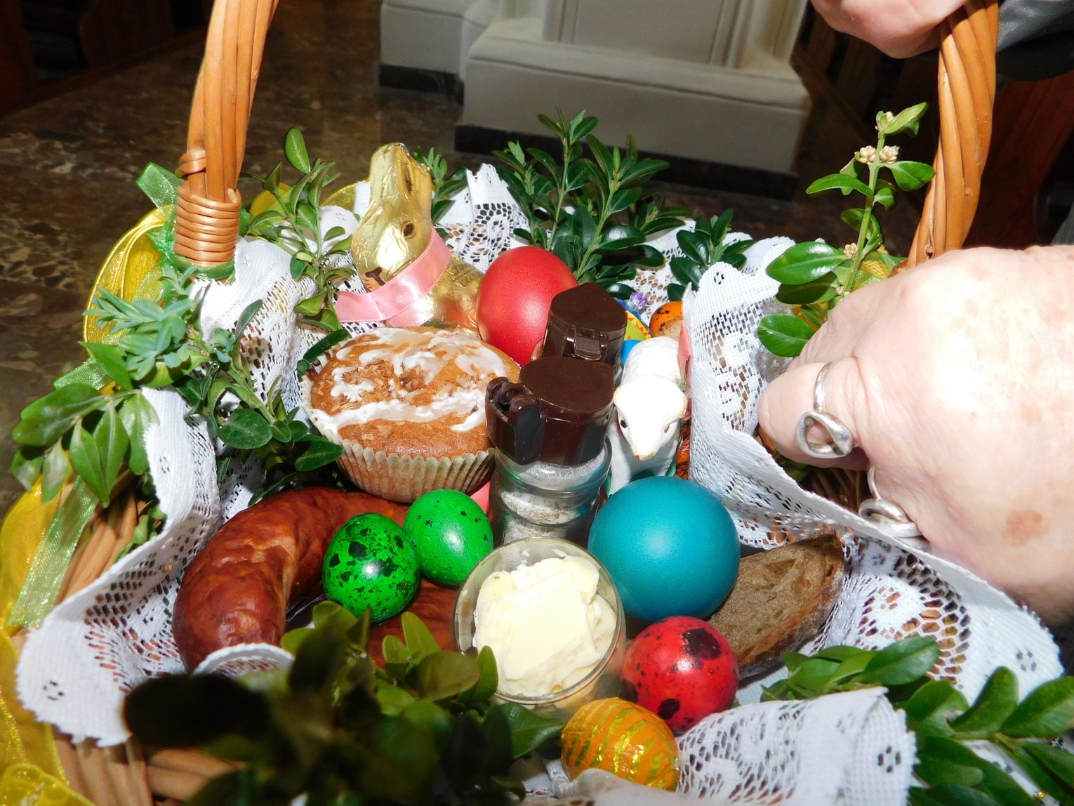 A w koszykach przeważnie malutkich, ładnie udekorowanych prawie wszystko to, co w niedzielne śniadanie znajdzie się na świątecznym, pięknie ustrojonym stole. I tak każdego roku mimo że właściwie nic się od lat nie zmienia, wszystko cieszy od jajka do baranka, babki i pisanki.