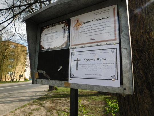 Na tablicach informacyjnych zamieszczono klepsydry z następującymi nazwiskami: