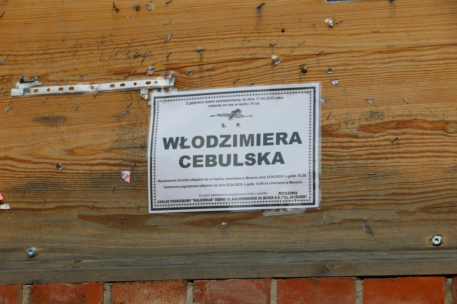 Ceremonia pogrzebowa odbyła się 22 kwietnia 2022 r. o godz. 14 na cmentarzu w Moryniu.