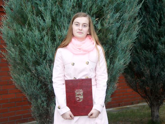 Klaudia Woźniakowska, uczennica III klasy Liceum Ogólnokształcącego o profilu kosmetyczno-rehabilitacyjnym w Zespole Szkół Ponadgimnazjalnych nr 2 w Gryfinie. Ambitna, sumienna i zaangażowana w życie klasy i szkoły. Interesuje się psychologią i biologią. Lubi także czytać książki i aktywnie spędzać wolny czas. Jej marzeniem jest znajomość wielu języków obcych i studia na Uniwersytecie Gdańskim na kierunku neurobiopsychologia. Średnia ocen: 5,0.