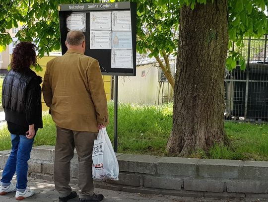Na tablicach informacyjnych zamieszczono klepsydry z następującymi nazwiskami: