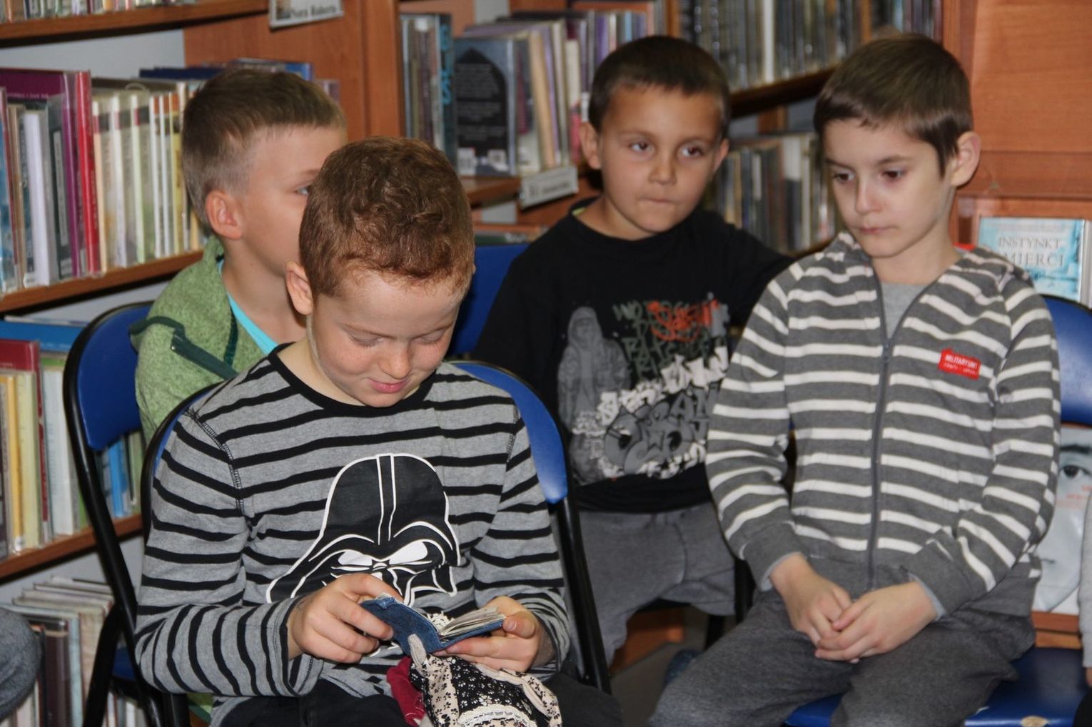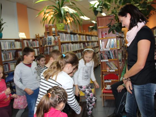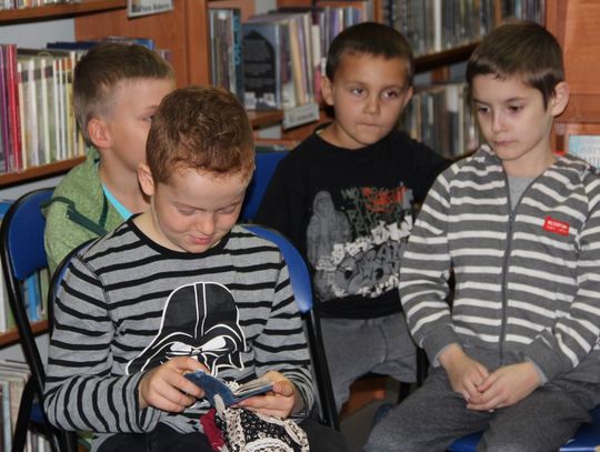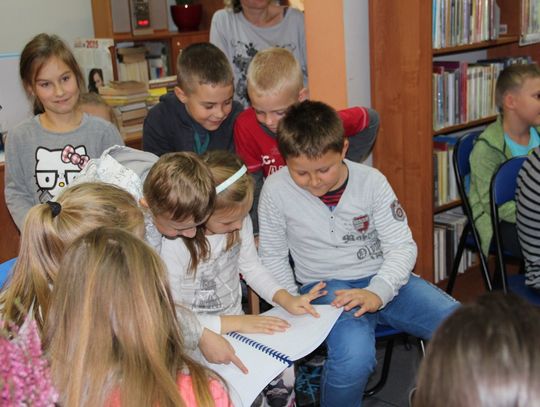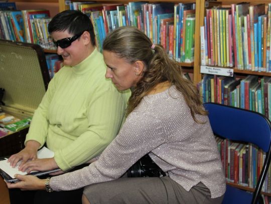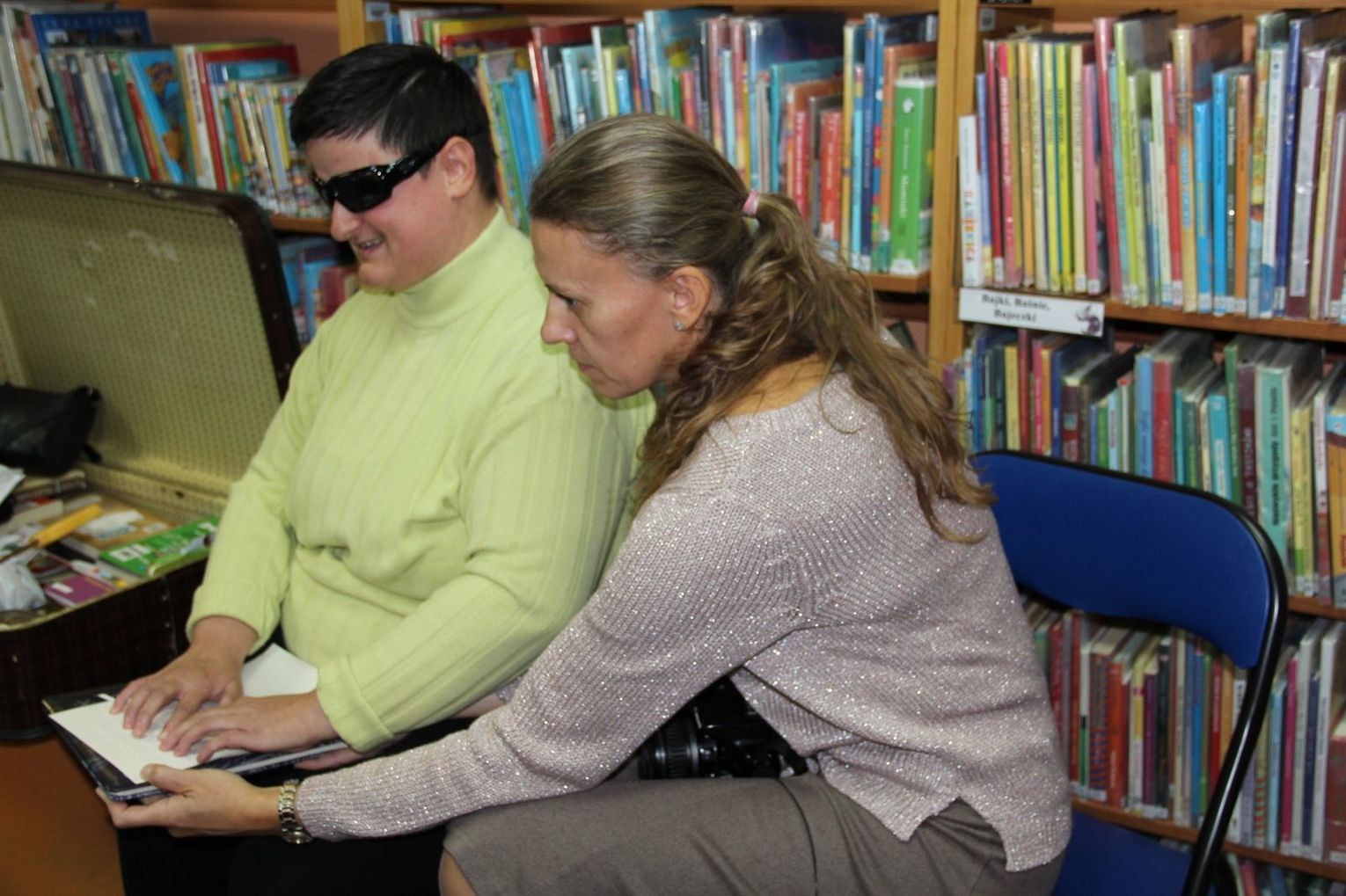 Drugoklasiści mieli okazję wysłuchać wiersza przeczytanego brajlem a nawet spróbować czytać brajlem. Niestety, bez rezultatu. Liczyła się jednak możliwość dotknięcia książki, którą czyta Monika.