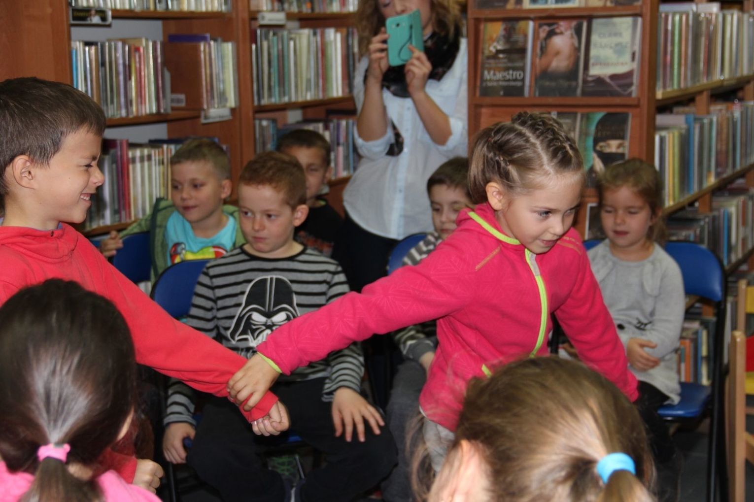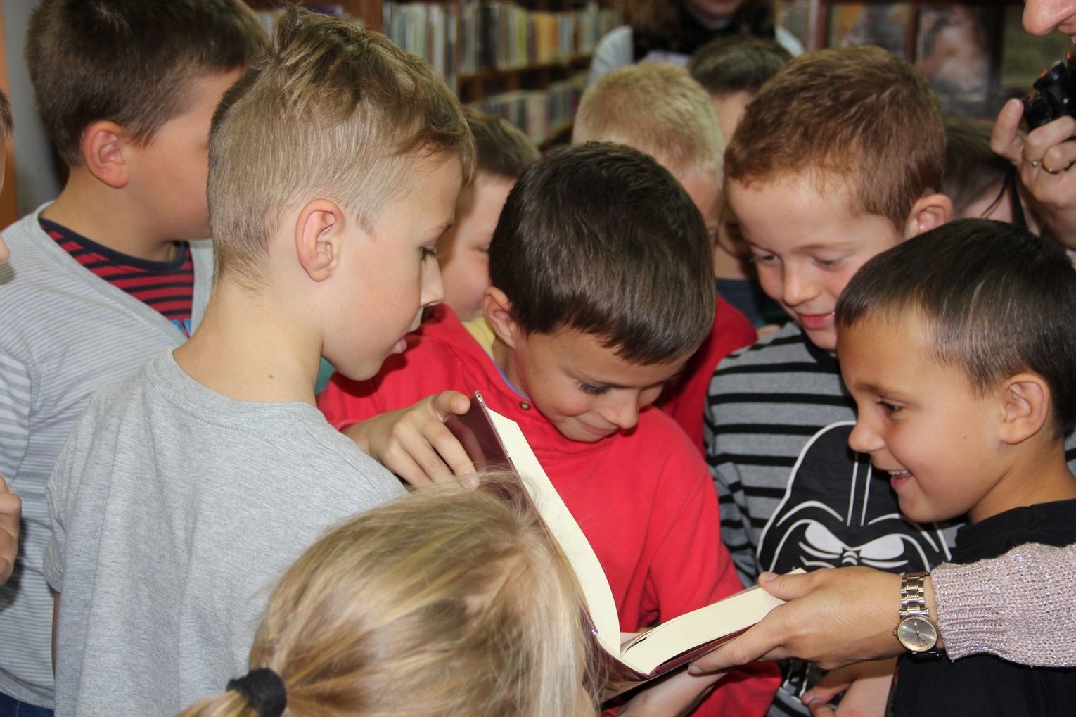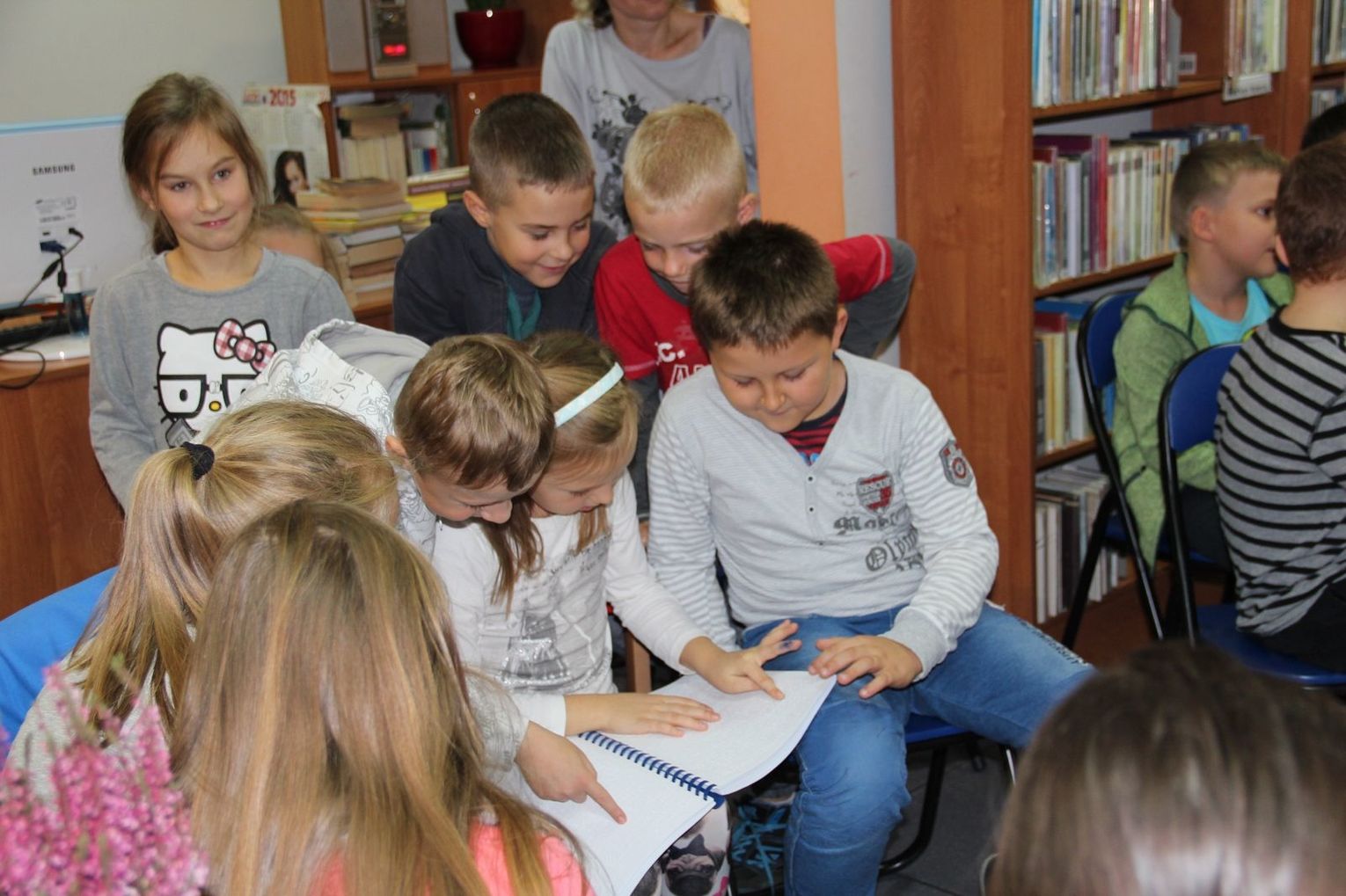 Drugoklasiści mieli okazję wysłuchać wiersza przeczytanego brajlem a nawet spróbować czytać brajlem. Niestety, bez rezultatu. Liczyła się jednak możliwość dotknięcia książki, którą czyta Monika.