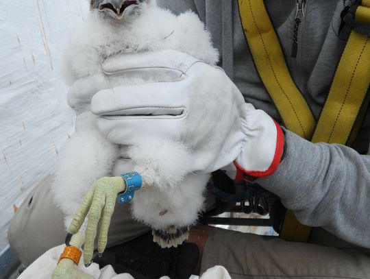 W gnieździe mamy trzy młode, dobrze odkarmione, już wyrośnięte samiczki. Przez wiele lat gniazdowała tu jedna samica, która była rozpoznana, a w tym roku mamy nową samicę - mówi Sławomir Sielicki, prezes Stowarzyszenia Na Rzecz Dzikich Zwierząt „Sokół”.