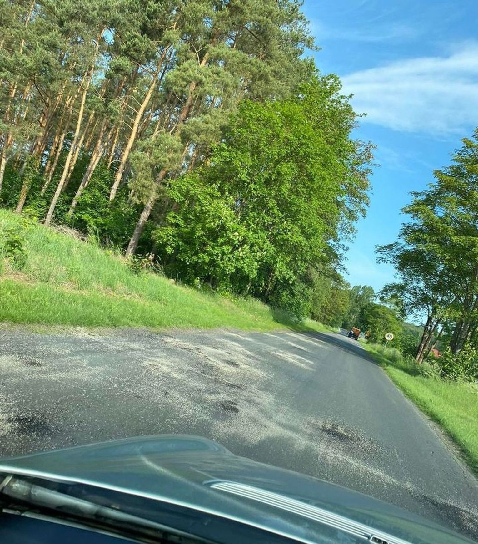 W ciągu ostatniego roku to już chyba trzecie, a na pewno drugie takie łatanie. Wszystko oczywiście zostanie wypłukane. A zagrożenie takie wypadające spod kół kamienie stwarzają ogromne.