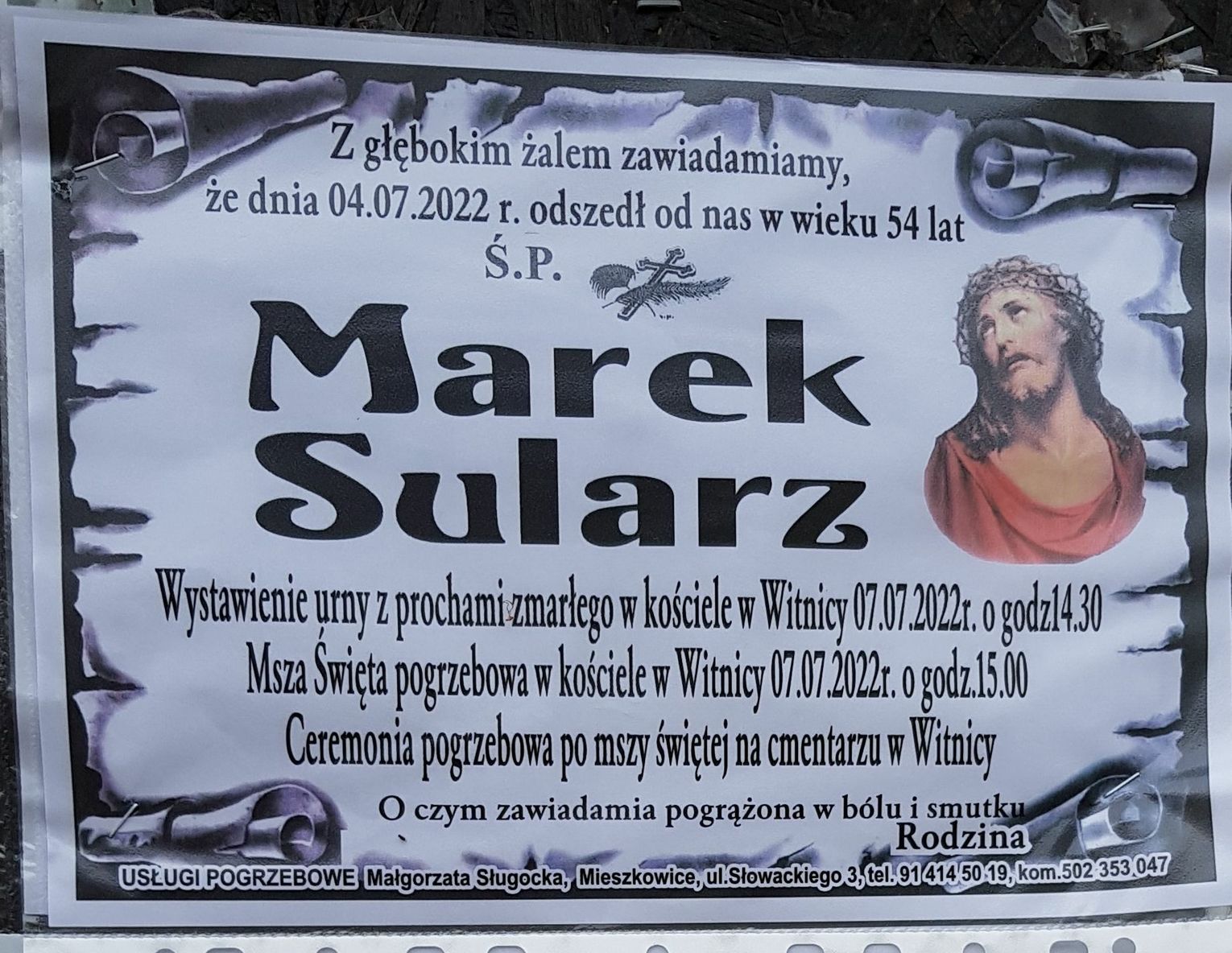 Marek Sularz zmarł 4 lipca 2022 r. w wieku 54 lat