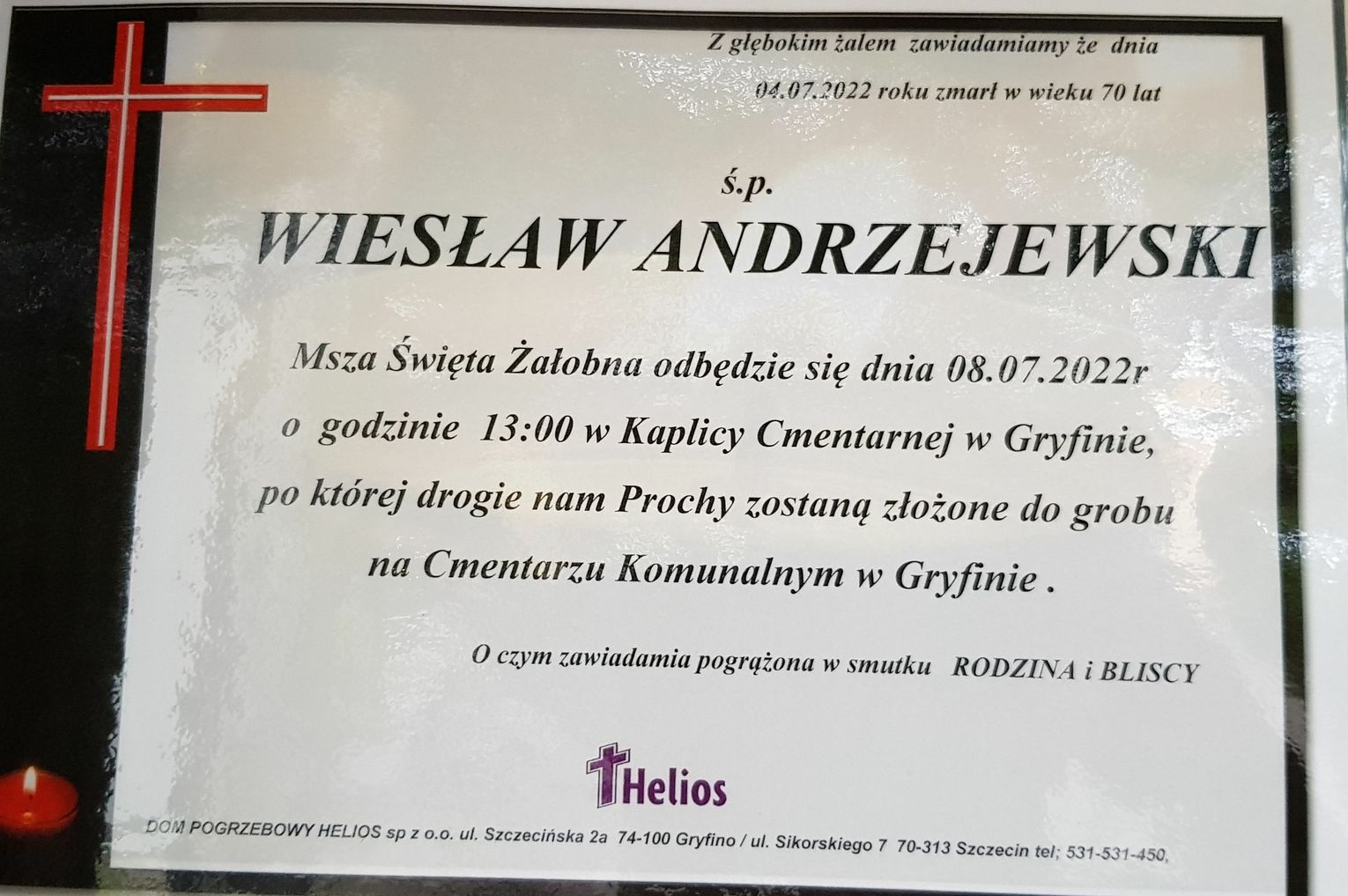 Wiesław Andrzejewski zmarł 4 lipca 2022 r. w wieku 70 lat