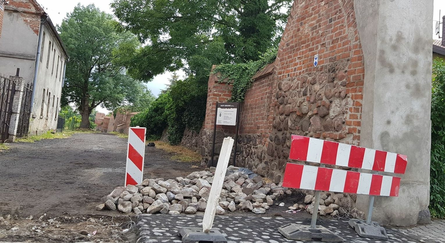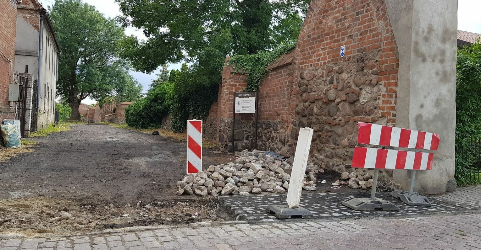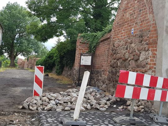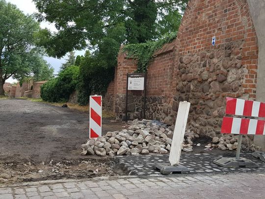 Sprawa dotyczy chodnika pod murami miejskimi. Powstaje z kostki granitowej, podobnie jak pierwsza partia średniowiecznej budowli.