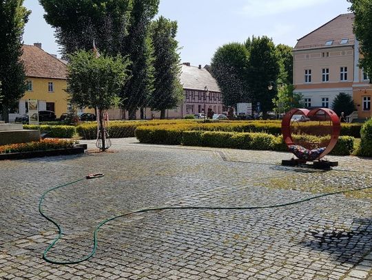 Na placu Wolności w Mieszkowicach koło pomnika Mieszka I uruchomiona została kurtyna wodna.