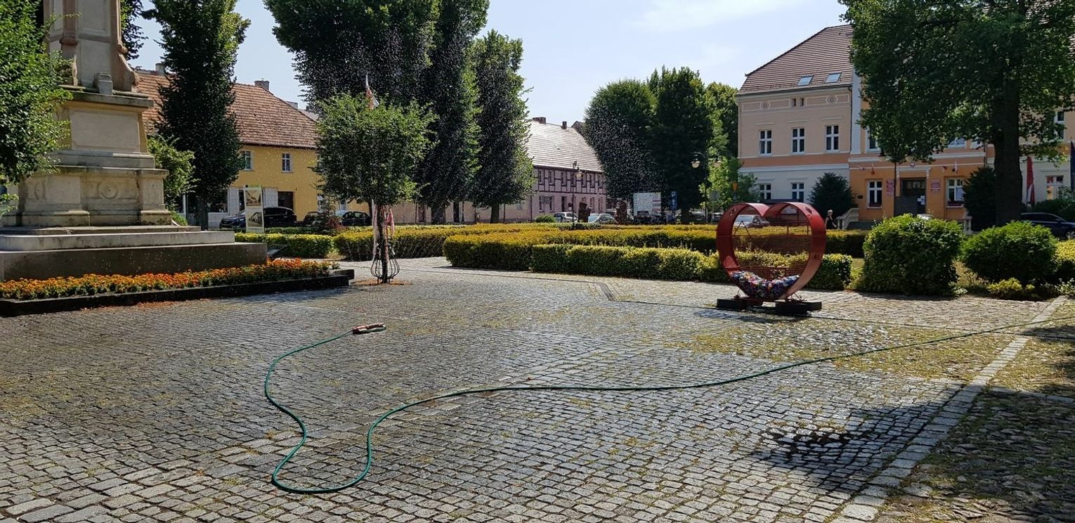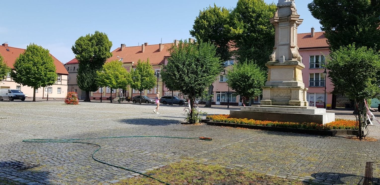 Kamienny plac nie przyciąga jednak dzisiaj ani mieszkańców, ani przyjezdnych. Jest za gorąco i wiele osób woli schronić się przed słońcem w mieszkaniach albo schłodzić się nad jeziorem.
