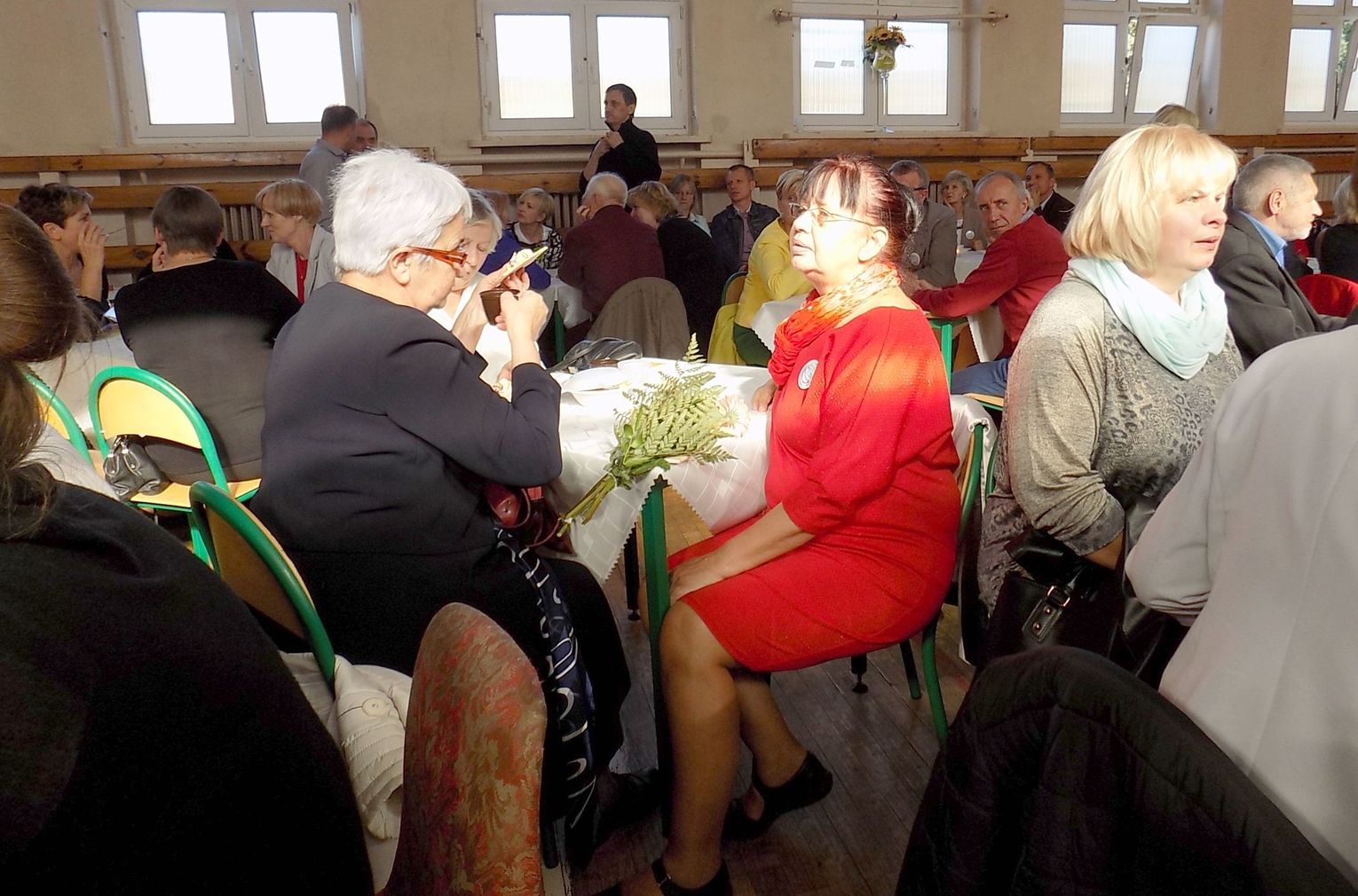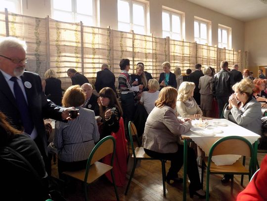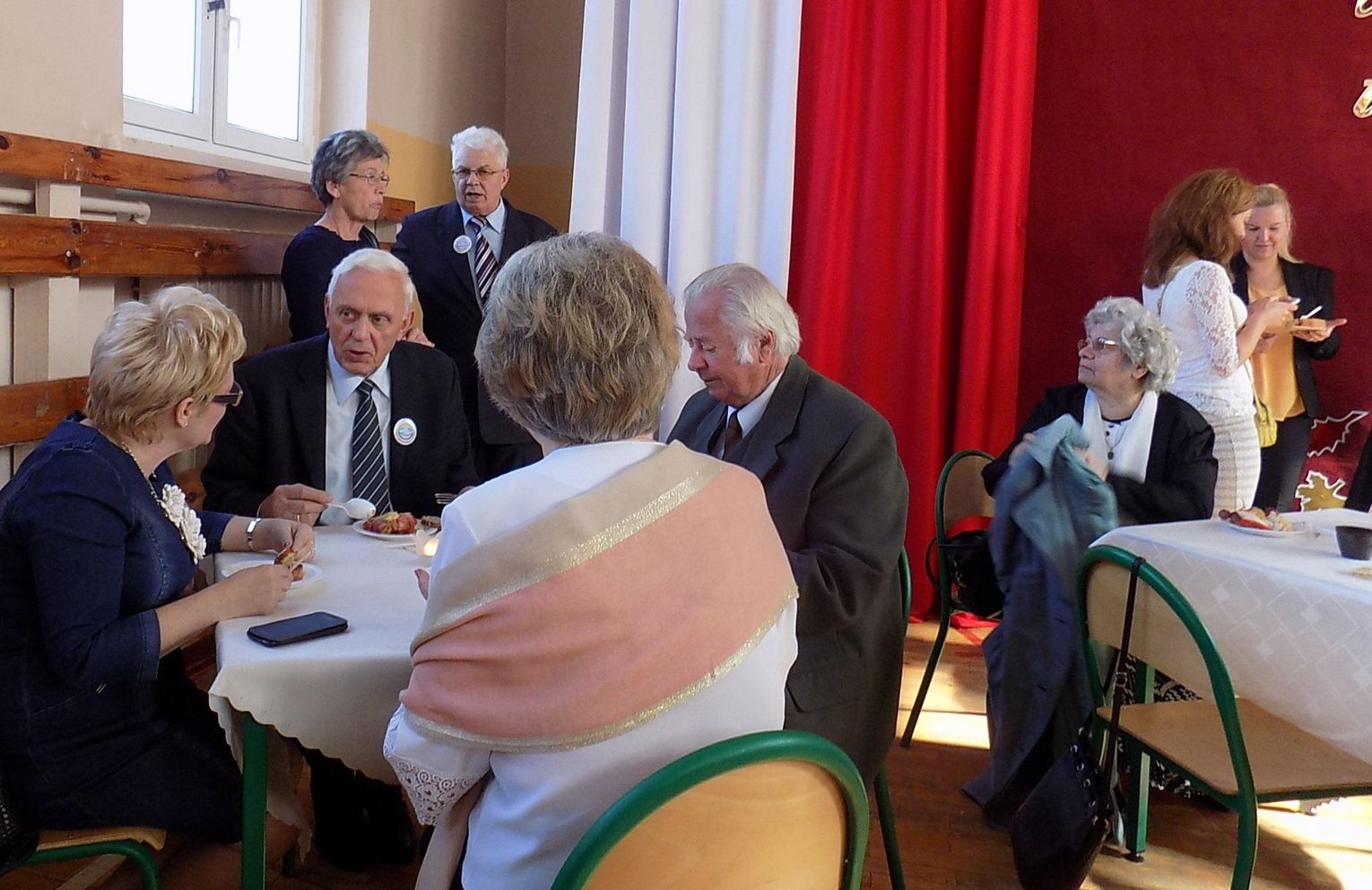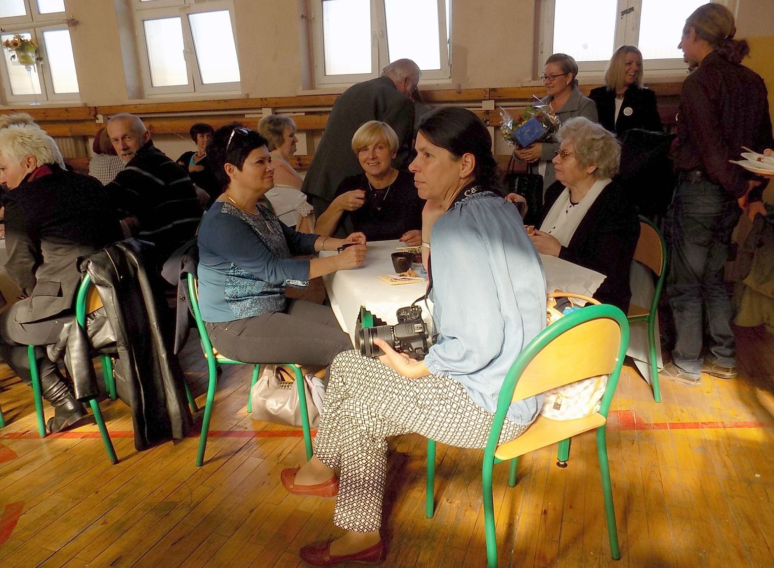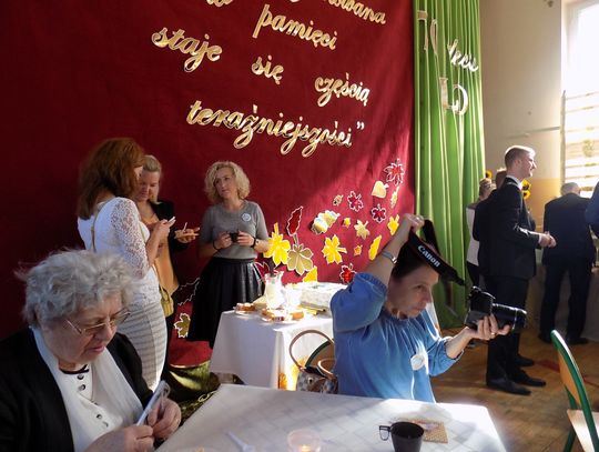 Po uroczystościach w sali kinowej wszyscy udali się do szkoły, gdzie mogli zapoznać się z jej osiągnięciami i to nie tylko w nauce. Sala gimnastyczna ledwie mogła pomieścić uczestników spotkania. Wspomnienia się przeplatały. Pamiętasz? Nie poznajesz? Gwar, śmiech i tyle chciałoby się jeszcze opowiedzieć. Wszystko niby takie samo, a jednak inne. O wszystkim decyduje upływający, zmieniający się czas.