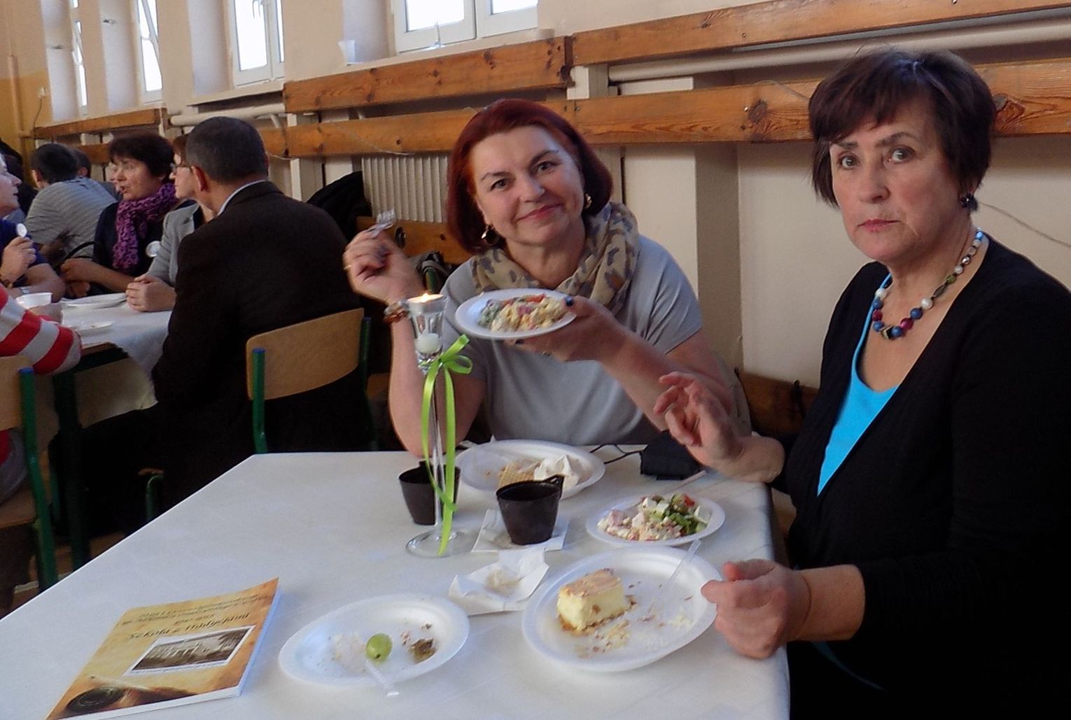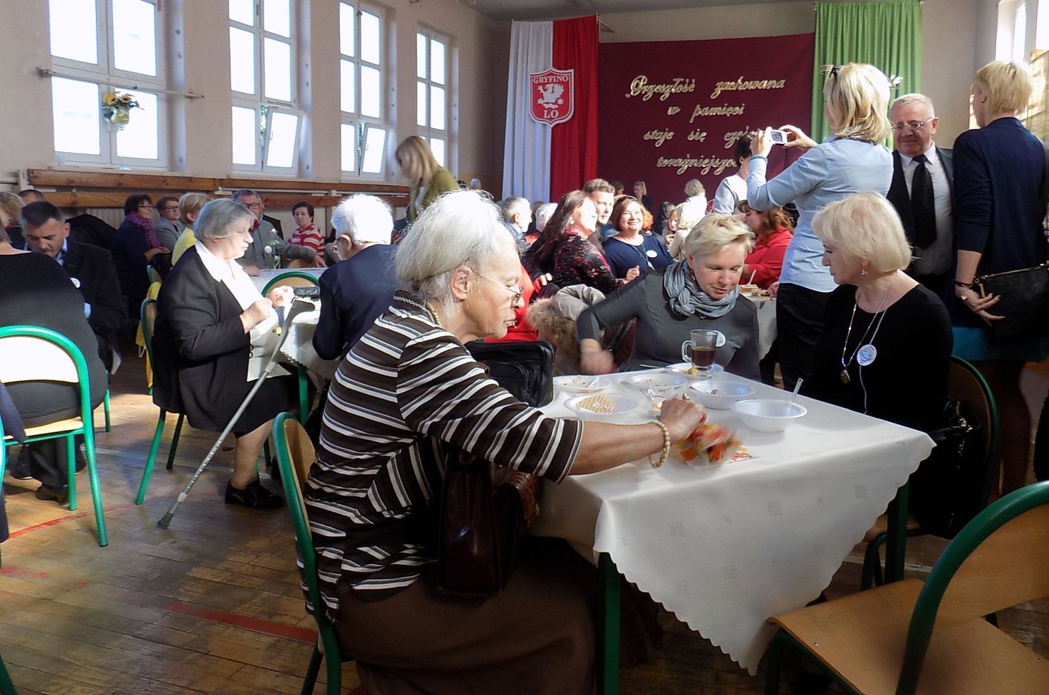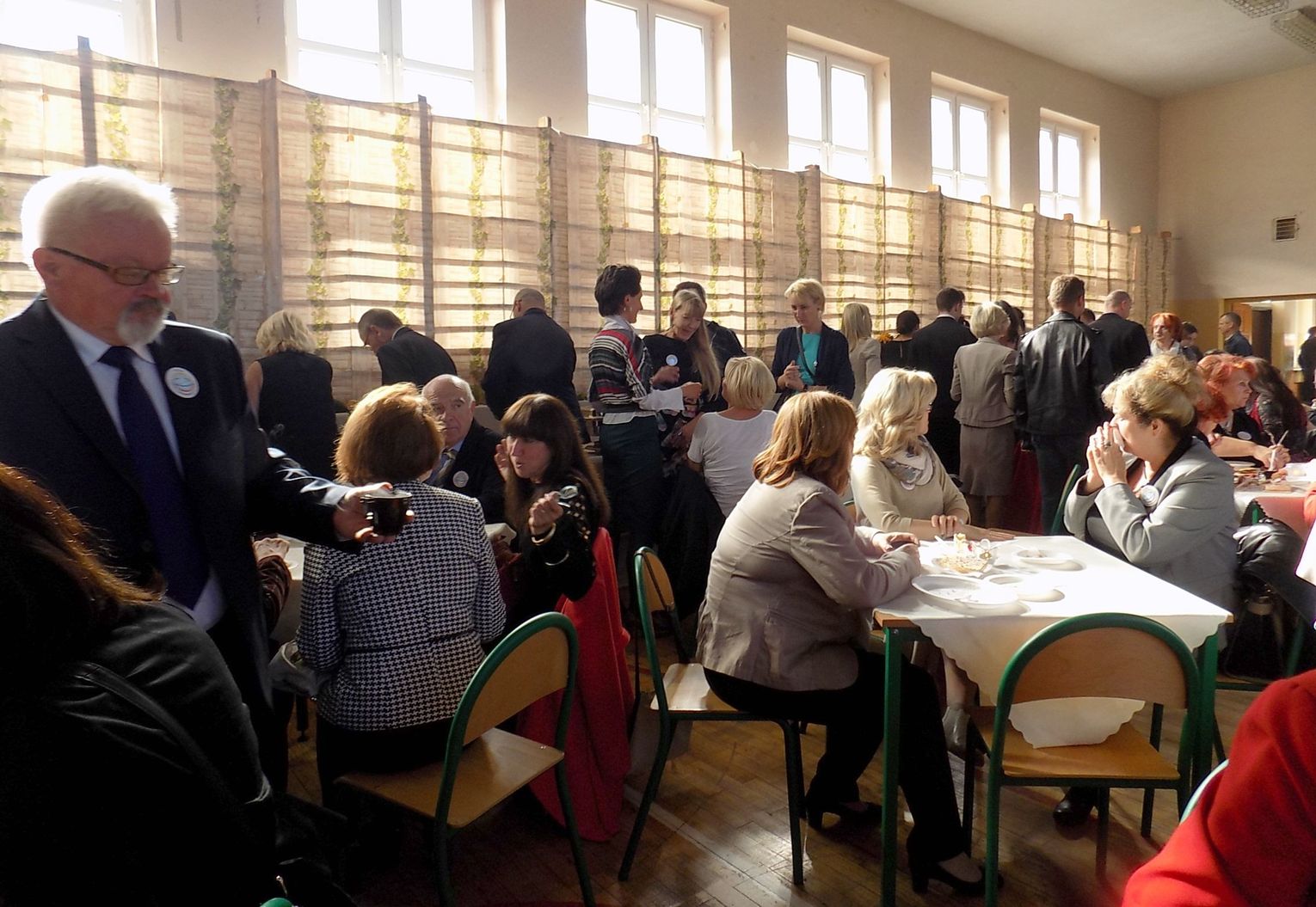 Po uroczystościach w sali kinowej wszyscy udali się do szkoły, gdzie mogli zapoznać się z jej osiągnięciami i to nie tylko w nauce. Sala gimnastyczna ledwie mogła pomieścić uczestników spotkania. Wspomnienia się przeplatały. Pamiętasz? Nie poznajesz? Gwar, śmiech i tyle chciałoby się jeszcze opowiedzieć. Wszystko niby takie samo, a jednak inne. O wszystkim decyduje upływający, zmieniający się czas.