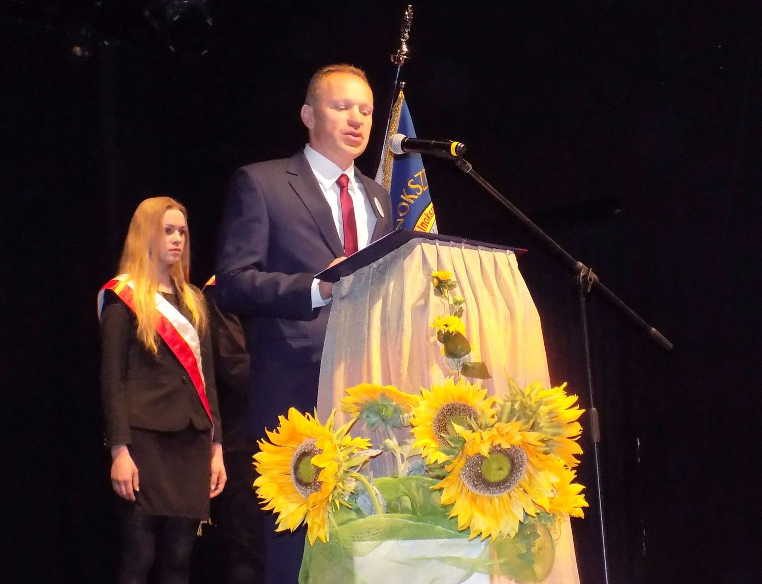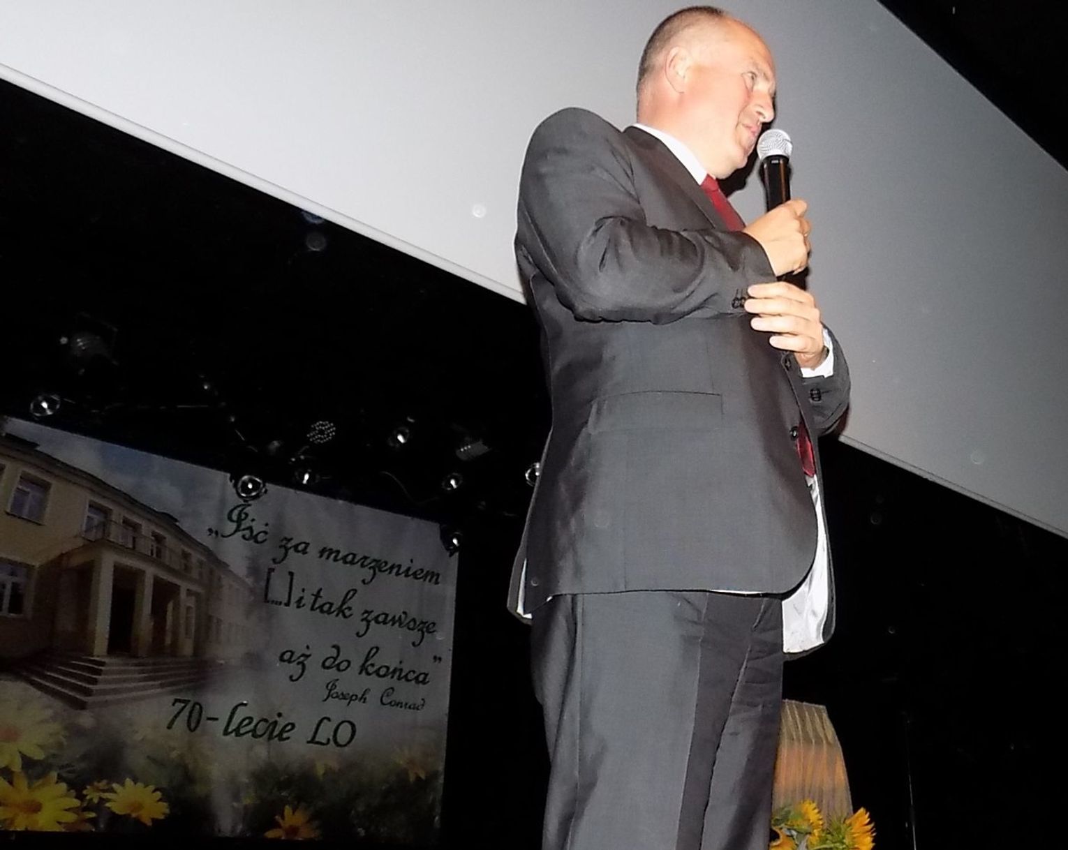 - Wszyscy zawsze byliśmy i jesteśmy dumni z osiągnięć naszej szkoły od pierwszych dni jej istnienia. Nigdy się nie cofała. Jej mury opuściło wielu absolwentów - przyszłych prawników, lekarzy, artystów. Pamiętają o nas. Dostałem list od absolwentki, która w czterdziestym ósmym roku skończyła w naszej szkole maturę (oczywiście w innym niż obecnie budynku). Gratuluje nam i życzy wielu sukcesów. Dziękuję gronu pedagogicznemu, które na przestrzeni lat wkładało i nadal wkłada tak wiele wysiłku w wychowanie pokoleń. Matematyka, język polski, historia, chemia, ale również patriotyzm, prawość i przyzwoitość – tego uczono w tej szkole od lat. Dziękuję wszystkim pracownikom za ich trud i poświęcenie, które owocują wielu osiągnięciami. Młodzież zawsze mieliśmy wspaniałą – powiedział dyrektor Sławomir Głuszak, witając zebranych.