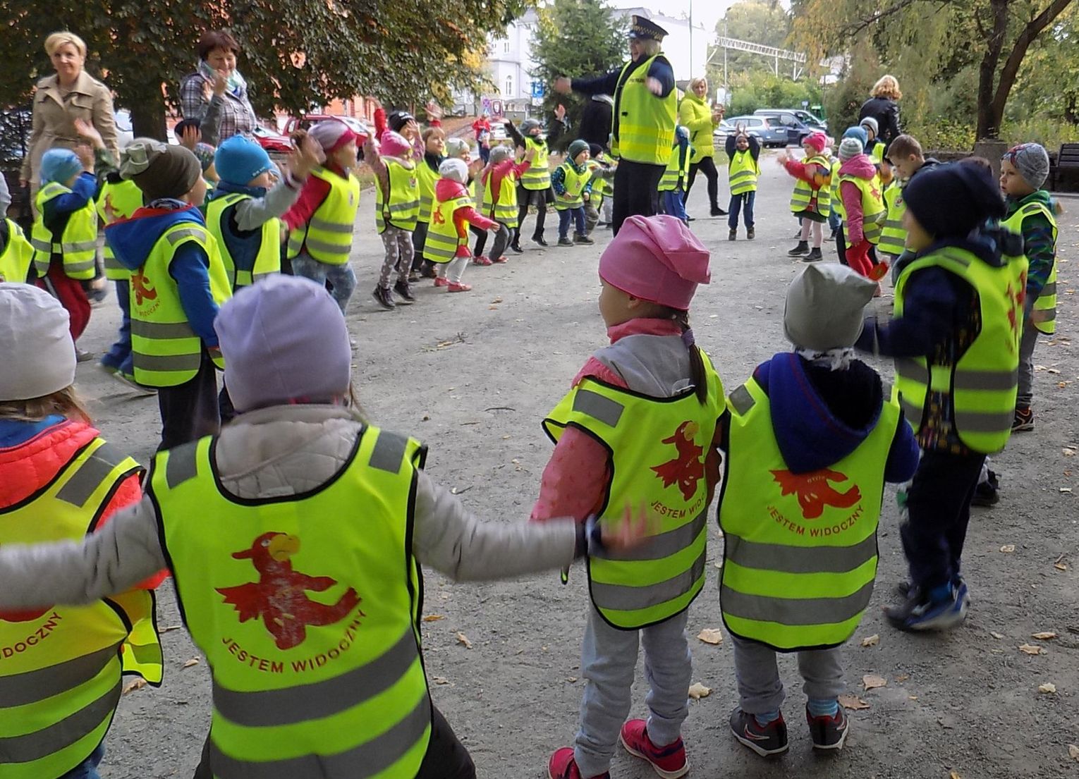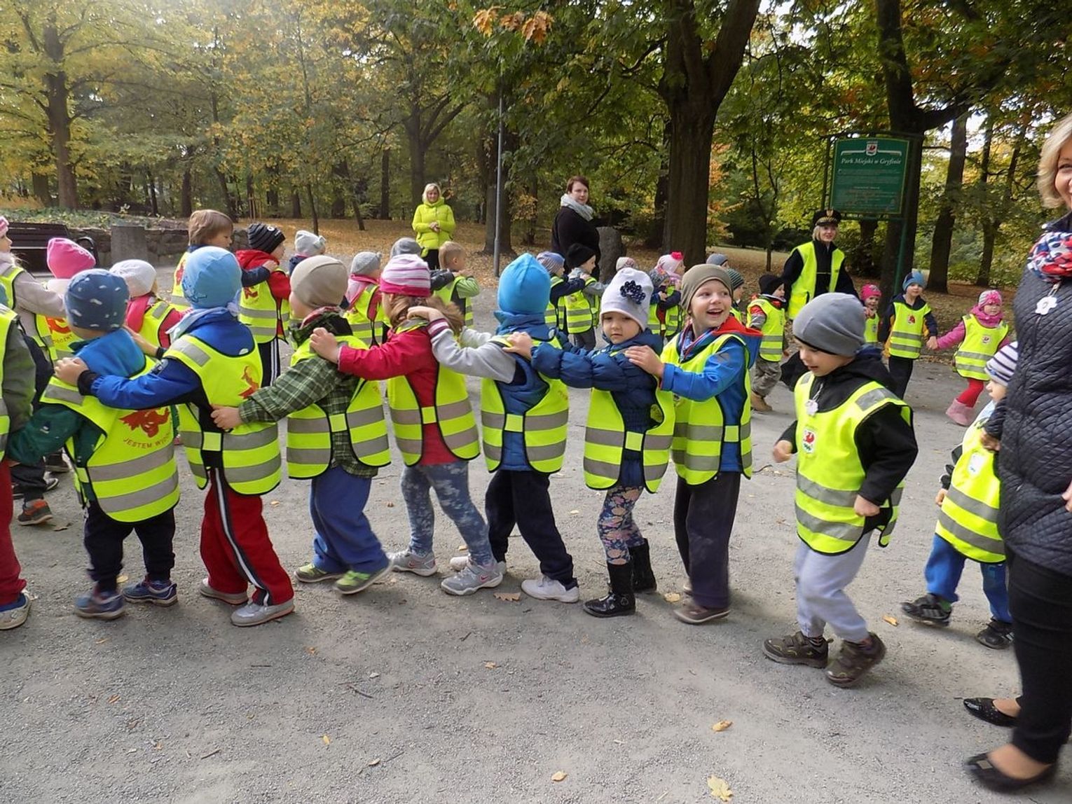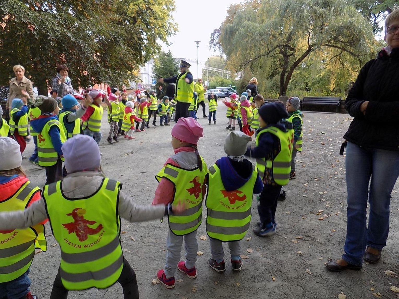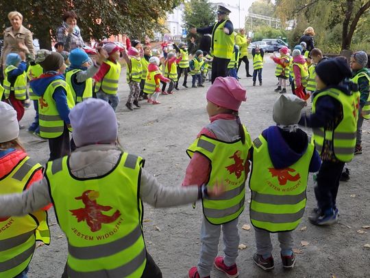 W czwartek, 8 października przedszkolaki w parku pod opieką wychowawczyń i przy pomocy pani ze Straży Miejskiej pogłębiały swą wiedzę o ruchu drogowym.