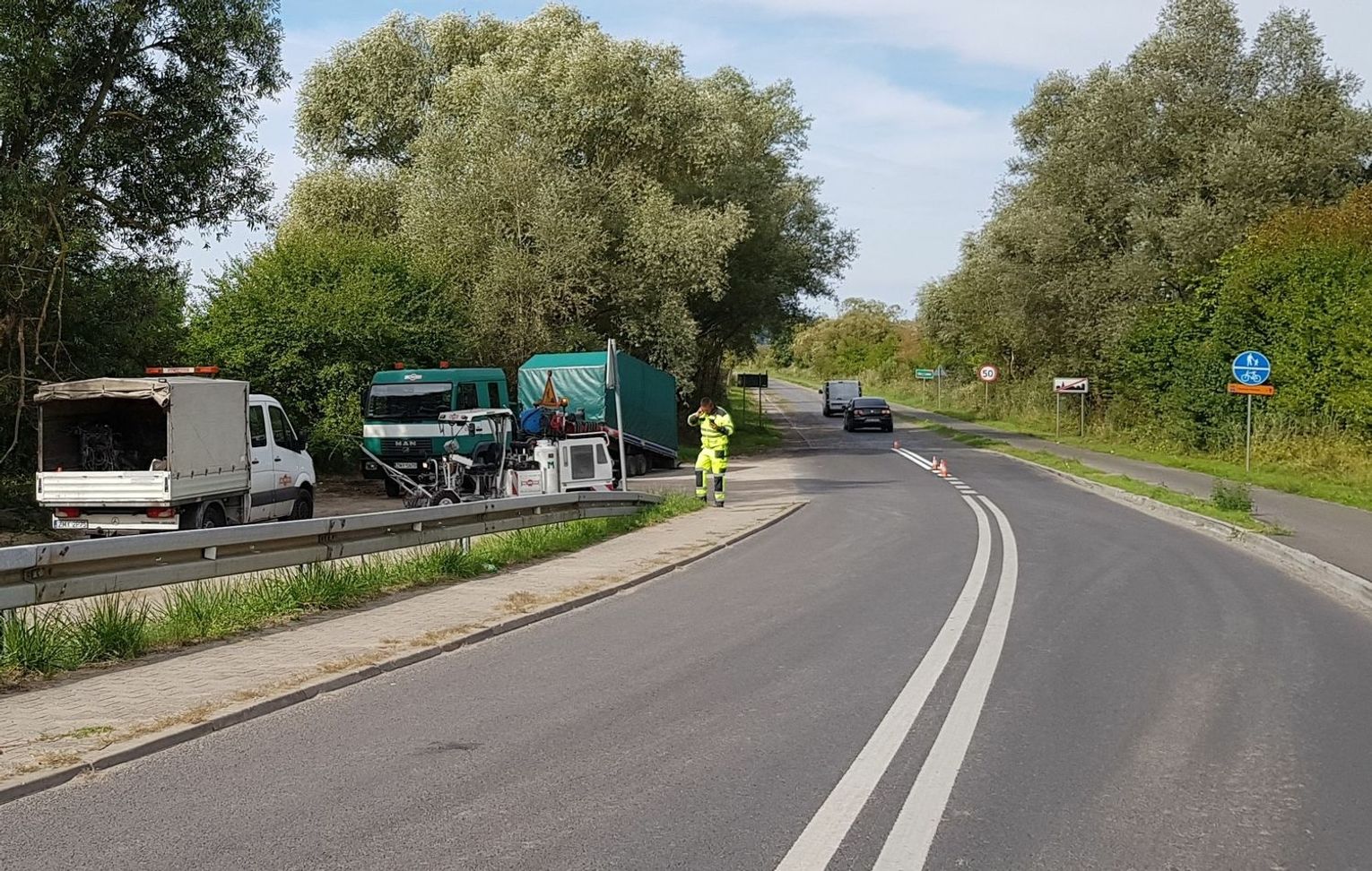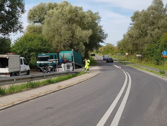 Na drodze wojewódzkiej na Międzyodrzu malowane jest oznakowanie poziome. Dzisiaj 6 września 2022 r. od samego rana trwają prace.