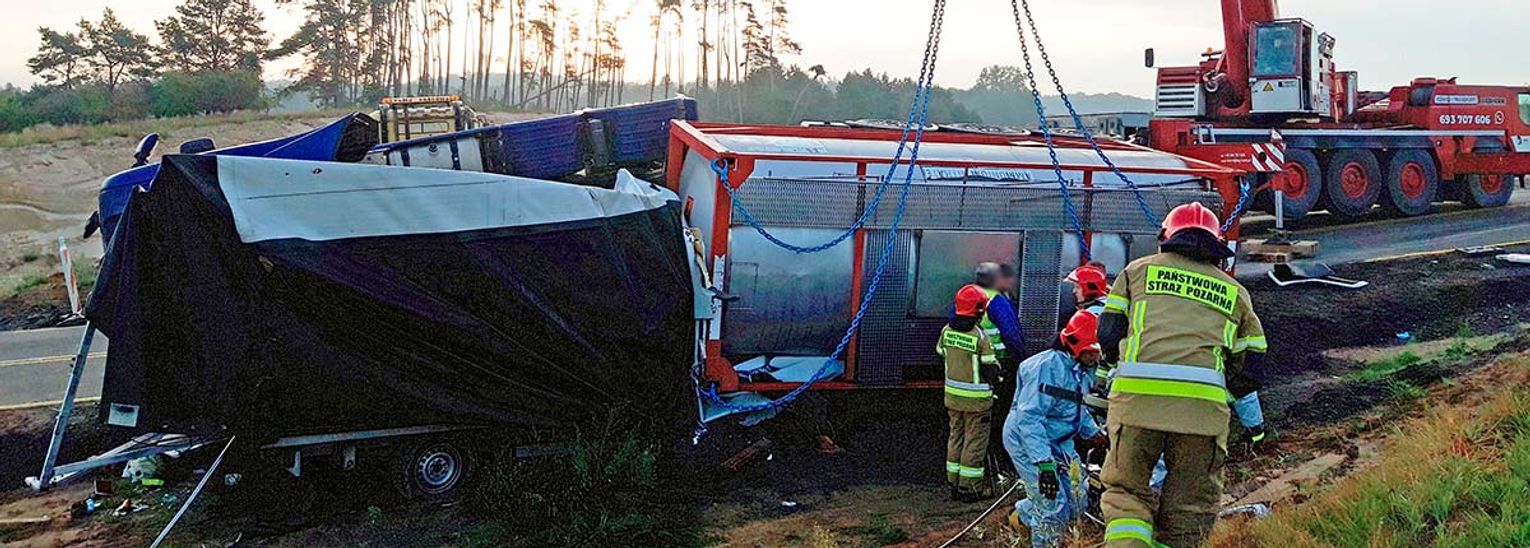 -Sprawca zdarzenia został przez policjantów zakuty w kajdanki, bo jechał cysterną na podwójnym gazie, mając aż 2 promile alkoholu - piszą dziennikarze ikmien.