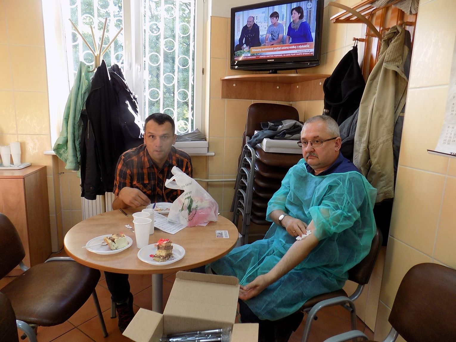 Spotkanie 1 października miało z paru powodów nieco uroczysty charakter. Początek dobrej współpracy - zapowiedziana pomoc lekarza specjalisty podczas zajęć i wykładów prowadzonych przez Ewę Lewczuk w szkołach. Szansa na pozyskanie młodych krwiodawców, zapowiedziane akcje. Był tort przyniesiony przez Annę Kościukiewicz. Zorganizowano konkurs. Prawidłowe odpowiedzi premiowane były losowaniem nagród. Można było wygrać wizytę w Lagunie, koc polarowy, bon obiadowy lub do usługę w warsztacie samochodowym.