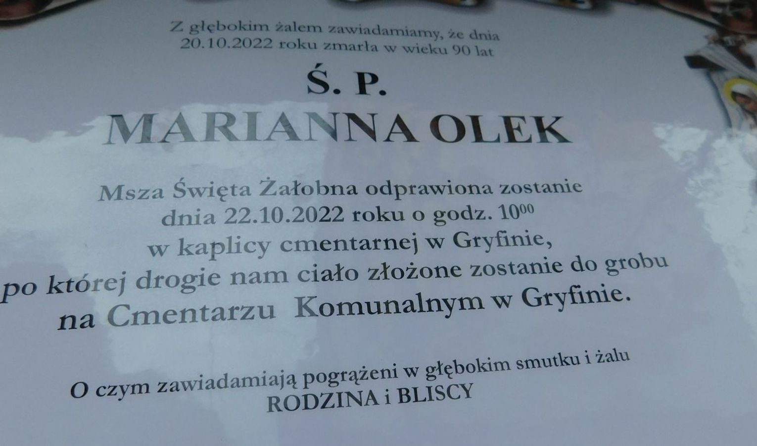 Marianna Olek – zmarła 20 października 2022 r. w wieku 90 lat