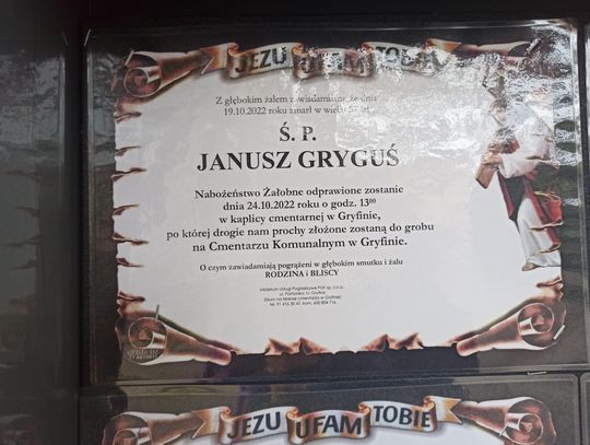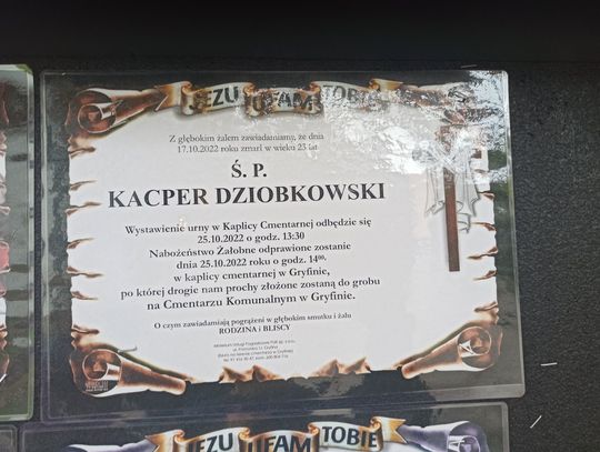 Msza św. żałobna odprawiona zostanie 24 października 2022 r. o godz. 13.00 w kaplicy cmentarnej w Gryfinie.